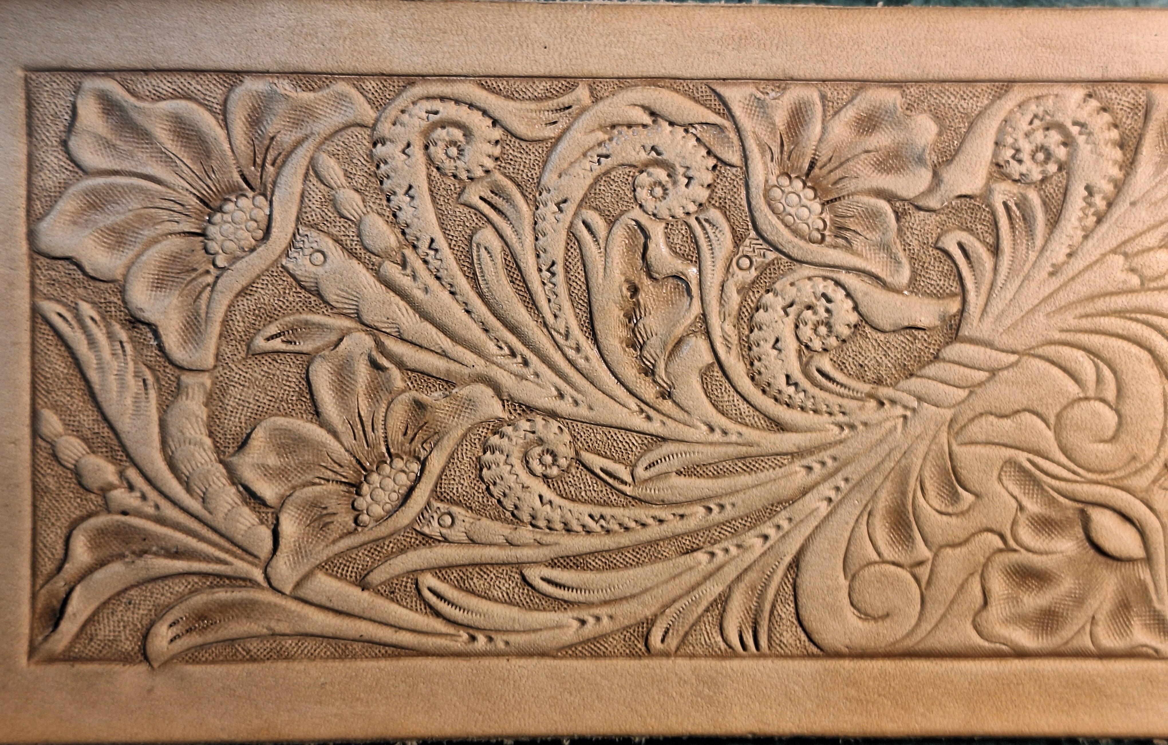 Thank you, yes Sir working on my weak area. Pictoral and Figure are my favorite and floral was lagging. Finished the left half of the wallet and started getting sick, it is sitting till I am better. A head knife came, cost 25.00 missed mine and didn't want another nice one. Surprisingly it was extremely sharp. Can I find shortcommings, sure but for the price it works well above it. Made a sheath for it don't want any red fluid leaking.