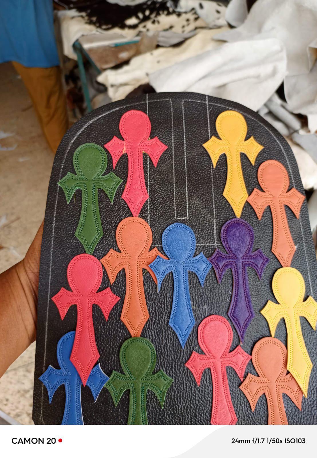 I’m sending you a photo of the older patch design that was used on the bags. All the color patches in the image are leather. Just letting you know this project is from an older collection. -