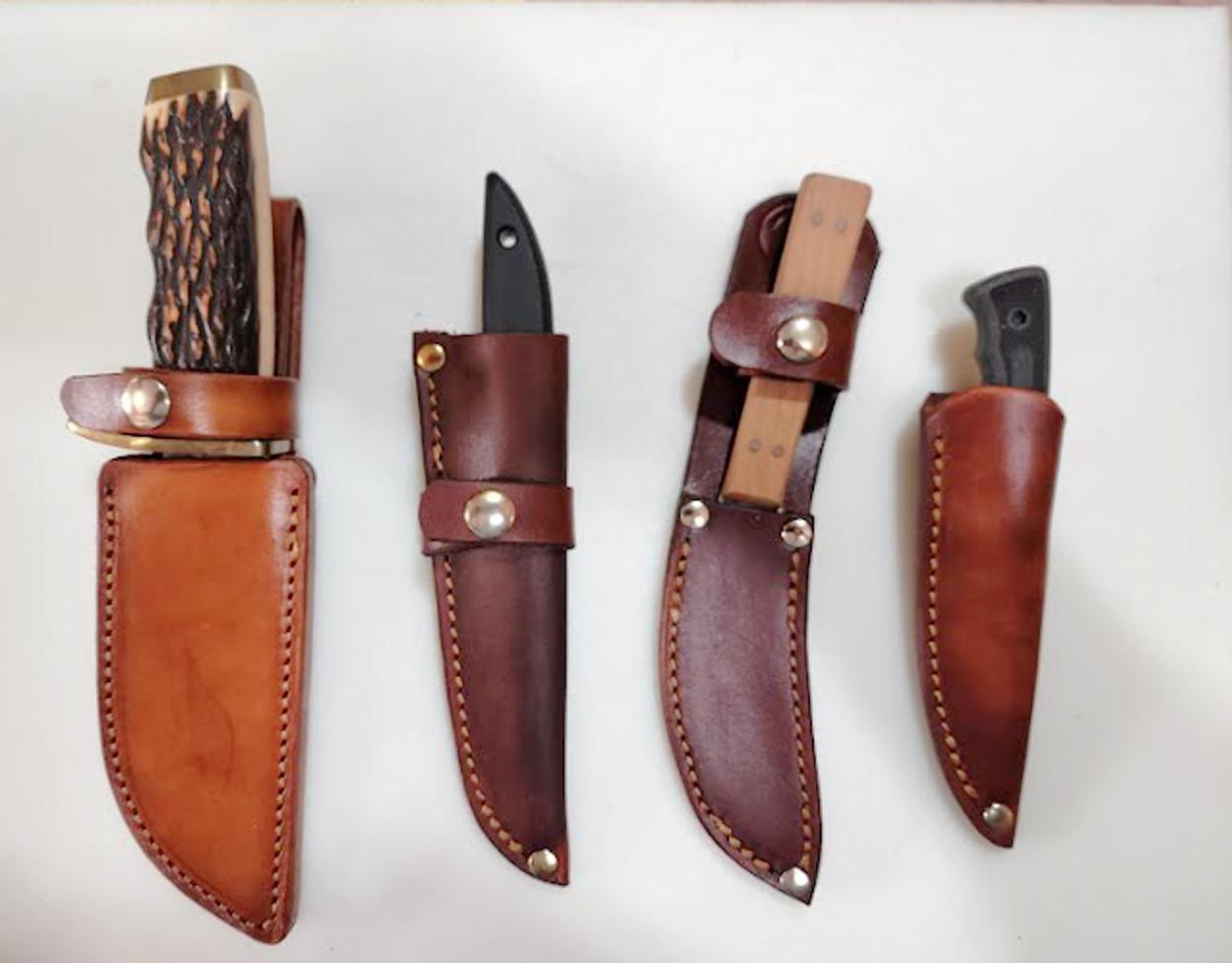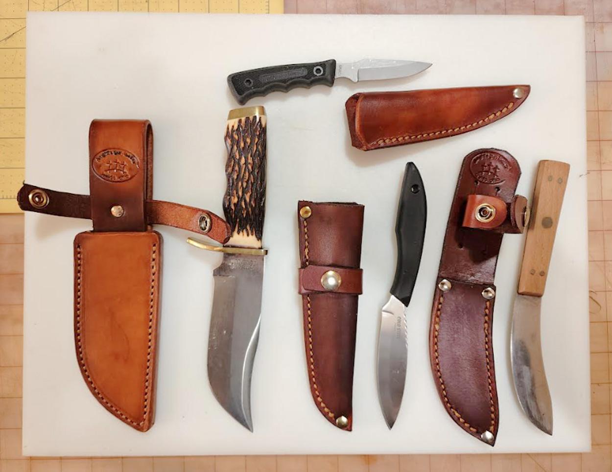 Had a fellow bring me his handful of knives that had no sheath . . . so I made em for him. Here they are. May God bless, Dwight