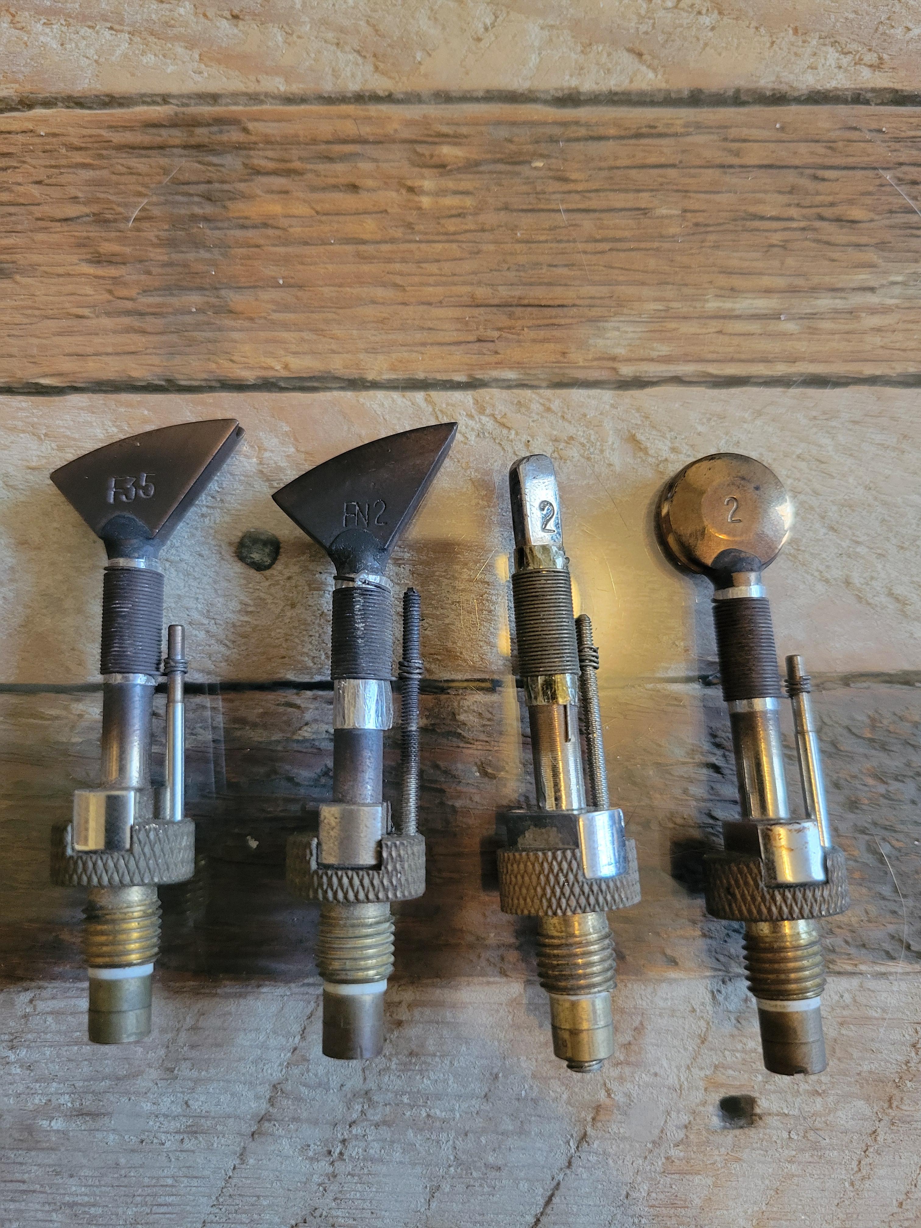 Hello all! I'm selling my Regad style creasing tips as a set because they are meant to be used together, for just $100 plus $5 shipping it includes the following. I'm selling this cheap so please don't ask to break up the set. I included pictures of my work so you can see the stitch line and crease...BEAUTIFUL! it's the same spacing HermĆØs usesF3.5 Style: (used to create a stitch line) the FN2 has some carbon build up because it's the one I smoothed edge paint with and when I cleaned it off it didn't glide over the edge paint as nice but I can clean it for you but if I were you I'd keep as-is for edge paint work FN2 Style: used to put a perfectly spaced crease right on the stitch, this creates the rounded crease HermĆØs is known for FN2 round Style: used on curves, gussets etc FN2 Detail Style: use on hard to get to areas and small parts to crease