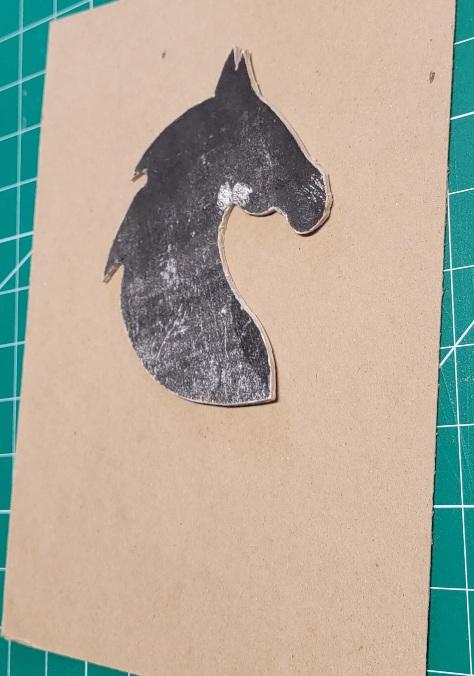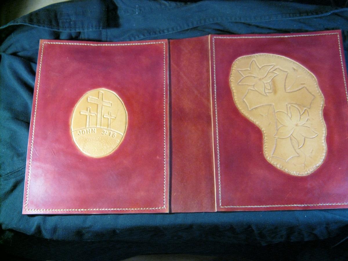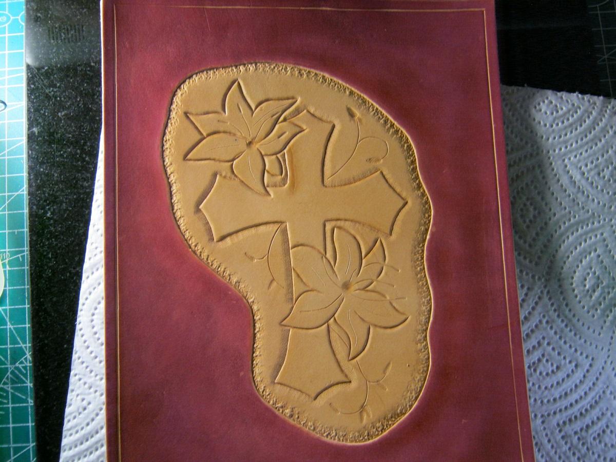 Thanks! For the inlay I used a second piece of binder's board in the shape of the horse head. I formed the inlay leather to that shape. That second binder's board raised the leather up to be just a little higher than the outer leather otherwise it would have made the horse flat. When I made the inlay I extended the leather all the way to the left, right, and top so you don't notice a seam line. For the bottom I skived the edge to minimize the seam line. Thinking about it now I should have extended the leather all the way to the bottom to save me the headache. lol It looked something like this before covering it up. In this image the back board is .6mm but in the actual one I used 1.8mm board, just like the horse head.