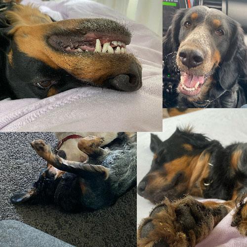 Part 2 – Measuring Your Dog This part is much more hands-on. You will see photos and graphics and get an explanation for every single measurement, so you can fully understand what you are measuring—and why it matters. Before we start, I want to introduce the dog who will be the model for all graphics and pictures in this guide. Meet Tova This is Tova. She is almost three years old and an English Setter mix from Tuscany, Italy. I got her when she was imported to Germany at six months of age. Since then, we’ve been a team—chaotic, playful, and always on the lookout for an adventure. When I got her, I already had years of experience with dogs and their equipment. Still, I quickly realised that I didn’t know everything. It started with collars and ended with constantly ill-fitting harnesses. The harnesses she wore caused discomfort over time, especially for her long back—and that was on me. They were always some unfortunate mix of too large in one place and too small in another, and I didn’t spot the problem early enough. She is the reason I want to do better. So, how do we actually do better? By measuring our dogs correctly. General Measuring Rules - Take each measurement three times - Let your dog move a few steps between measuring rounds - Later, before cutting leather, check each strap length three times - Precision matters. Your dog will thank you. What You’ll Need Chalk (as soft as possible) or any non-toxic, non-permanent marker that shows on fur A flexible tape measure Something to write on Something to write with What We Are Going to Measure Neck circumference (in front of the sternum, below collar position) Elbow to floor Elbow to elbow Distance between the shoulder blades Torso circumference (widest part of the ribcage) Distance from chest to torso Distance from neck to widest part of the ribcage Before Measuring: Position and Anatomy Before taking any measurements, we need to understand the anatomy of the individual dog in front of us. Your dog should stand directly in front of you. I was able to measure Tova on my own, but if your dog is more active, get someone to help hold them calmly. Make sure: all four paws are on the ground the paws are as parallel as possible the dog stands “closed” (equestrians know exactly what I mean) Now grab your chalk—and a good amount of patience. Marking Anatomical Landmarks (This Is the Key Step) 1. Shoulder Line First, locate the shoulder and draw a line along it. In my photos this may be hard to see because Tova has her winter coat and the chalk didn’t show as well as I hoped. If you’re unsure what to look for, Figure 1 will help. Repeat this on both sides, then connect the lines across the neck and chest. 2. Shoulder Blade Positions (Static and Dynamic) Next, locate the shoulder blades and mark each side with a dot or cross. Now lift one front paw as high as your dog normally lifts it while walking. Feel for the shoulder blade again and mark its new position in the same way. This shows you how much the shoulder blade actually moves. 3. Elbow Movement Zone With the paw still lifted, locate the elbow and draw a vertical line marking its range. Repeat this for both sides. 4. Widest Part of the Ribcage Now locate the widest part of the ribcage. Some companies recommend measuring “one hand behind the elbow.” From observing different conformations, I’ve found that this rule of thumb does not consistently hold true. Instead, visually and manually identify the widest point and mark it with a vertical line on both sides. ------------------------------------------------------------------------------------------------------------------------------------------------------------------------ At this point, your dog will look like a child discovered abstract art. Now is also a good moment to calmly reassure your partner or other dog owners or concerned bystanders, that yes—you are completely fine. These chalk lines are our guides. They show us where movement happens and where straps must not interfere. Our motto here is very much work smarter, not harder—especially if your dog is not the calmest individual. Taking the Actual Measurements 1. Neck Circumference Using the shoulder line you drew earlier, measure above this line and around the neck, between the chalk line and the collar position. The tape should sit flat You should be able to slide at least one finger underneath If this measurement does not fit over your dog’s collar, that is not a problem. This will make sense later when we translate measurements into design. 2. Torso Circumference (Widest Ribcage Point) Use the vertical chalk lines marking the widest ribcage point as your guide. Measure all the way around the torso. Keep the tape level and as vertical as possible Now cross-check with the elbow movement lines: there should be at least two finger widths between the torso strap position and the elbow movement zone If not, move the measurement slightly backward. Elbow clearance is non-negotiable. 3. Distance Between the Shoulder Blades Measure the distance between the dynamic shoulder blade markings (the lifted-paw positions). This measurement tells you how wide the dorsal (back) strap is allowed to be. In Tova’s case, I ended up with less than one inch of usable space during movement. This means: the strap must be narrow, padding must be minimal and carefully planned Ignoring this leads to direct scapular restriction. 4. Distance from Chest to Torso (Between the Front Legs) Measure from the chest/sternum area back to the widest ribcage point between the front legs. This measurement defines how long the chest strap is allowed to be without drifting into the elbow movement zone. Measurements That Seem Odd—but Matter a Lot 5. Elbow to Floor Measure from the lowest point of the elbow straight down to the floor. This measurement tells us: how low a chest or Y-strap may sit where vertical restriction begins whether a harness design risks interfering with stride 