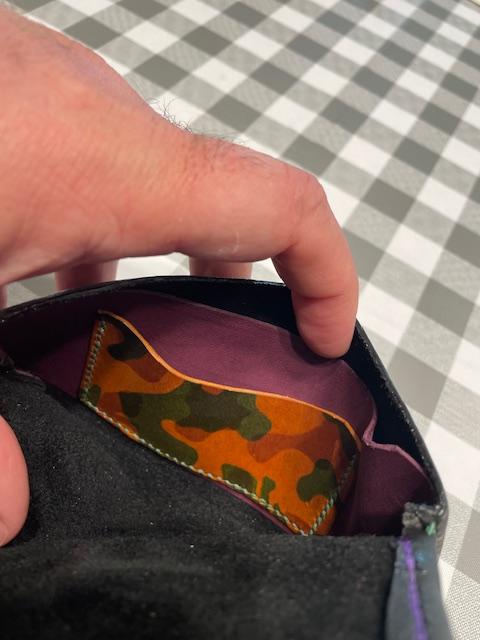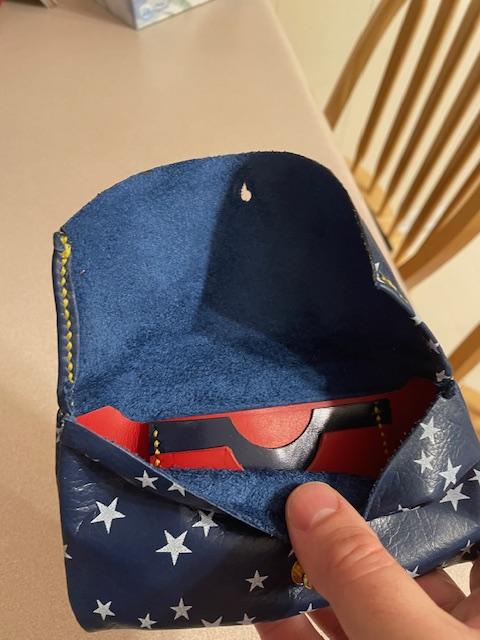 I wouldn't carry such a thing in my pocket, but customer is always right! I had fun with this one. Not much to it after the design and layout is done, but that was the fun part of this one. Sewing was a challenge, and learned a few things. Double stitched on all the corners. Who doesn't need more sewing practice? Lol