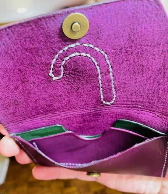 The first few pictures are all the same style but in many different variations. This has become a great seller. The last picture in this style is still in progress. I am waiting on some hardware. The crossbody was a very tedious build. I love the strong color contrast.