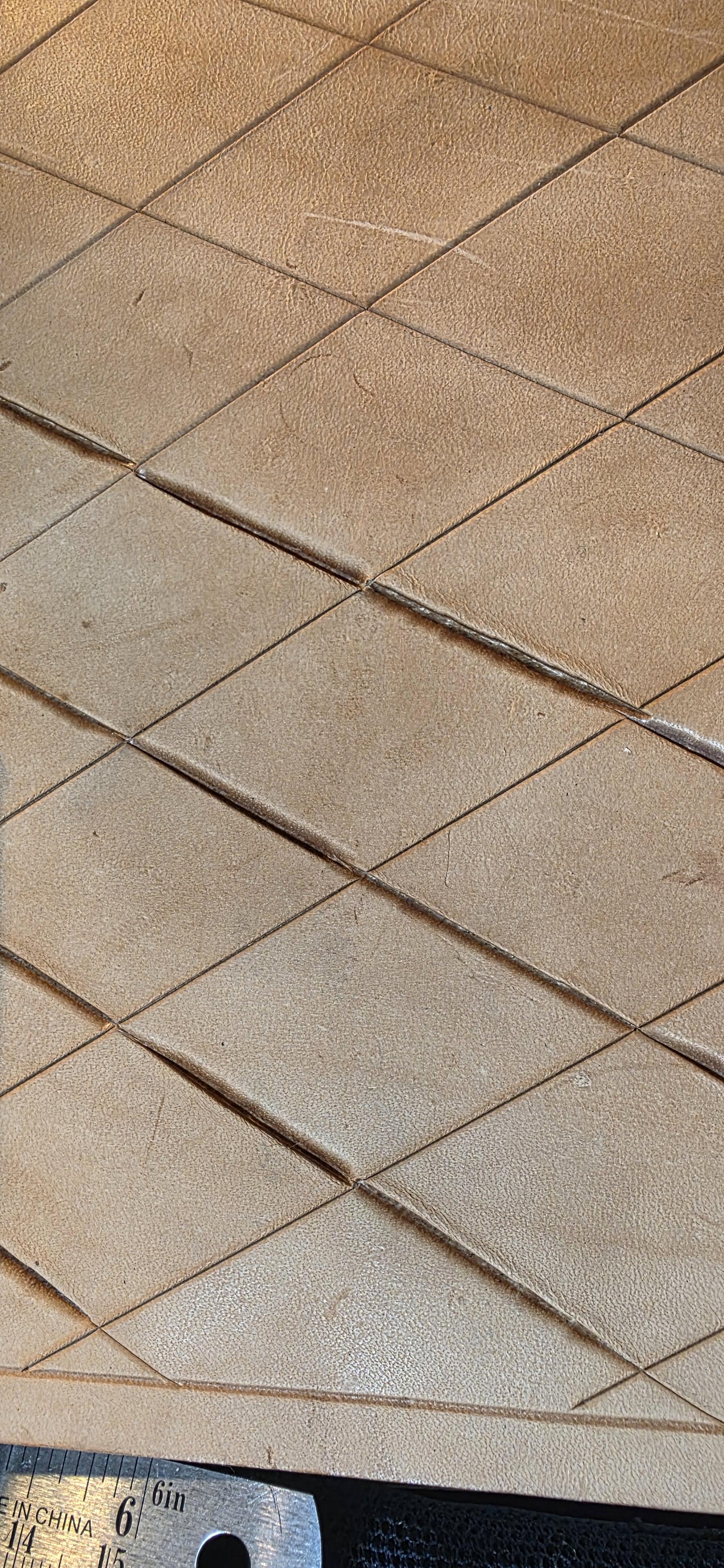 I have gone to just using a groover that puts an indent in the leather, doesn't scratch or cut the top layer. I found this works better oops situations and if I groove after I die there is not a white streak to possibly show under the stitches. Todd