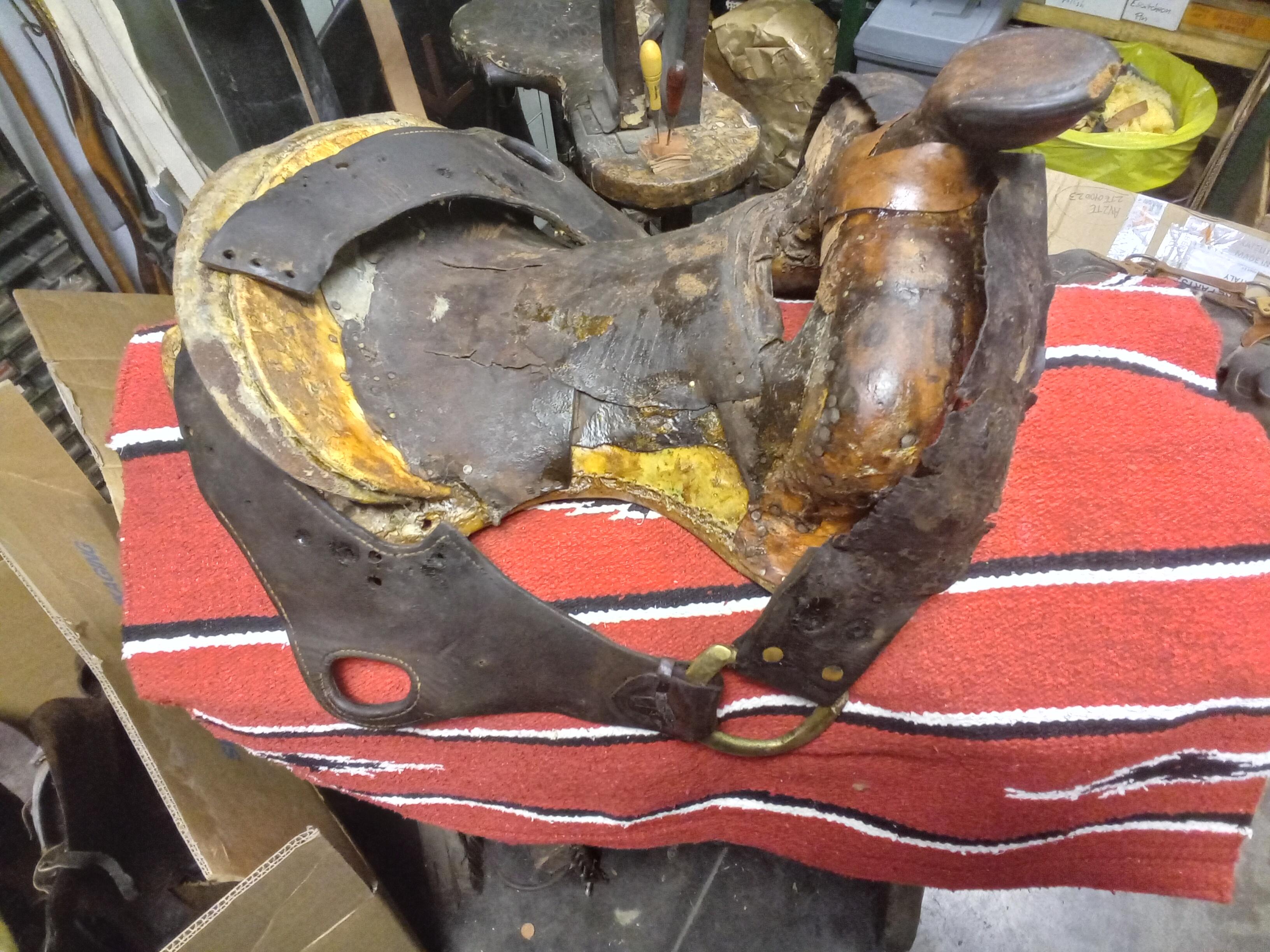 I'm still extremely early in this process, but wanted to start a thread for this project as it's technically already in motion. My Dad, Conrad "Connie" Naegle, was a saddle and harness maker and leatherworker for half his working life, before pivoting towards the machinery side of the industry where our family currently makes it's living. He had inherited several family heirloom saddles and had planned on restoring them eventually (of course life gets in the way). Half are currently in OK shape needing some basic work done, and the other half are far enough gone that they would need to be totally rebuilt. His health went downhill in later life (Alzheimer's and dementia) and he passed away in 2023. Being a working man his whole life, he didn't take well to having his body degrade, and his decline in memory and mental understanding of things we never really learned to cope with. I grew up partway between his leather shop and his machine shop, though my carrier has been on the machine side of things. I worked with him a bit on the saddles, but often found myself having to hold him back from getting in too deep. In his mind he knew what to do, but somewhere between there and his senses things would get scrambled and he rarely recognized it. The saying "He's forgotten more about it that you'll ever know," comes to mind, but in a sad and discouraging way. His original plan was to restore all of the saddles to be ridable again and I think this intent was a way to put his skills to work righting the wrongs of himself and past family members who had let the saddles fall into disrepair (the saddles were all ridable in his lifetime), but we quickly found that doing so would remove a lot of their history and authenticity, especially in the oldest saddles, so we decided to preserve some (such as my Great Grandfathers 1880's saddle) as they were, and make others ridable. This Porter saddle my Grandfather Buster Naegle got sometime in the 1930's in southeastern Arizona before he went off to school and then enlisted in the army during WW2. He went through boot camp down in Ft Bliss, but was transferred to Ft. Reno in Oklahoma where he trained horses and pack mules for the army. At some point after arriving there, there was some problems with their military saddles so with permission he had his family send him this Porter saddle to use and in some way it was a model of the kind of saddles they needed, and I think the guys in charge even ordered more from Porter to use at the fort (I'm hoping to eventually get in contact with someone at the fort to corroborate this, and I've already sent a message to the guys who have the old Porter card file website). I remember in the mid 90's my dad did some minor repairs to this saddle and rode it around our place in northern Idaho. As a kid I didn't make the connection, but my Grandfather died around this same time and I'm certain this saddle was particularly special to my Dad. When we started digging into it, the hope was to soap it up, replace the sheepskin, and do some other minor repairs, but the more it came apart, the more the pieces crumbled and stitches ripped through the leather. In retrospect, I think it should have been preserved as a static display, but at this point I think the can of worms is open, and my choices are to replace 90% of the leather, or call it a loss (not really seeing that as an option). The original leather is heavily worn, which would have been nice to preserve, but I think the alternative is to reproduce the pieces as closely as possible. I'm going to need to reproduce the Porter makers mark somehow. I think hand tooling it will leave too much room for error, so I'm hoping I can have one made without getting in any copywrite hot water. I had considered handing the project off to someone with more skill than mine, but I think these kind of projects always have a level of "artistic license" interpreting what details matter and which ones don't, and it's hard to turn that license over to someone else. Also, since my Dad was the family leatherworker and the saddle is a family heirloom, I think it best to keep the process in the family, even if it takes years to complete. My leatherworking skills have always been better on the technical process side, but I have a lot to learn of the craft and wisdom it takes to build a saddle. I'm starting by rebuilding some saddles that are less sentimental (thread about the first one *here*), but my end goal is to finish rebuilding this saddle (and others I'll post about later). Fortunately, all the pieces are there and give good patterns to follow. Even the tooling I can already see how to replicate. Thankfully it's simple old-school boarders and nothing too artistic, which is how I like saddles personally. Starting with the tree, I don't think I need to remove every bit of leather. I think the floor and other reinforcing pieces will continue to work. There are a couple of places that the wood under the rawhide has degraded, and I'm considering using some modern epoxy filler to fix those points (more on that later). Part of the challenge I think is that I want the saddle to be 100% original, even though so much of it has to be replaced. I can make a new seat and skirts that look exactly like the old ones, but then getting them colored right and formed together right can be a challenge. I don't want to artificially wear or weather anything other than dying the leather to match, but I also don't want the new parts to stand out against the old. Like I said, I'm starting by practicing on some other saddles, but with this one I'm going to take my time. One of my favorite mantras is to "Avoid permanent solutions to temporary problems." History deserves preservation, and I think keeping things functional as they were originally intended to be used is always the best approach.