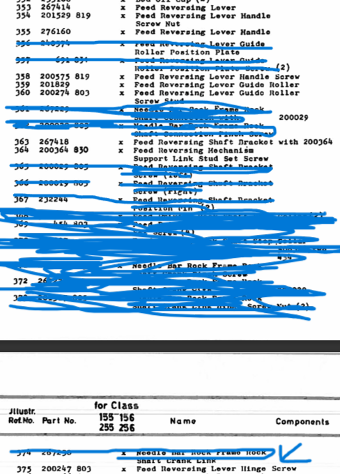 Hi Folks, I'm in need all of the reverse feed parts shown in the attached parts list for my Singer 211G156. Basically, I have the stud that the lever attaches to, but not the screw, and I have the plate on the sewing machine body that the roller contacts. Everything else in between is gone. I managed to find a couple things at Dowling and College Sewing, haven't yet contacted Ronsew, but I'm hoping someone has some salvaged stuff stashed that covers everything. Thanks!