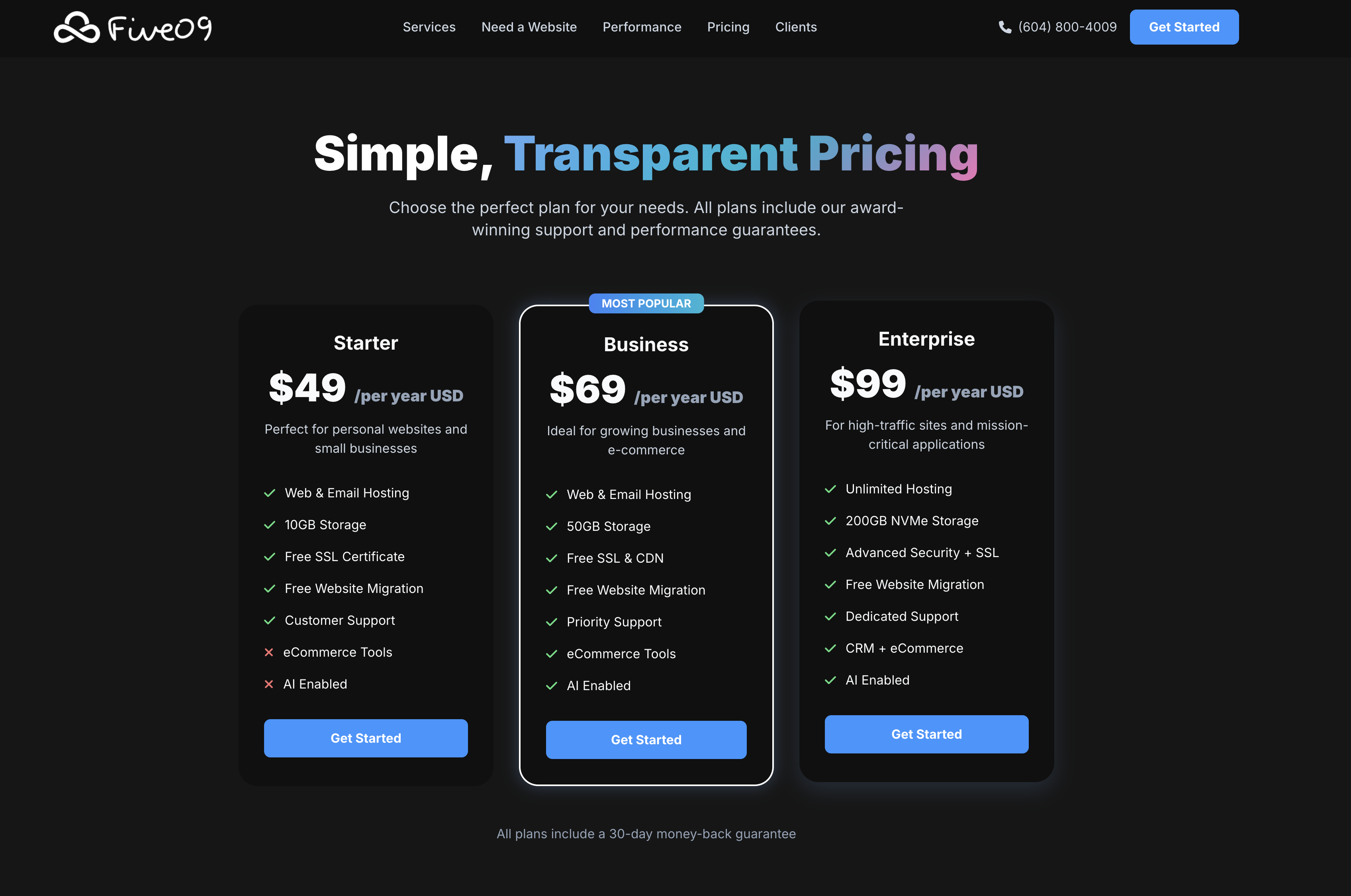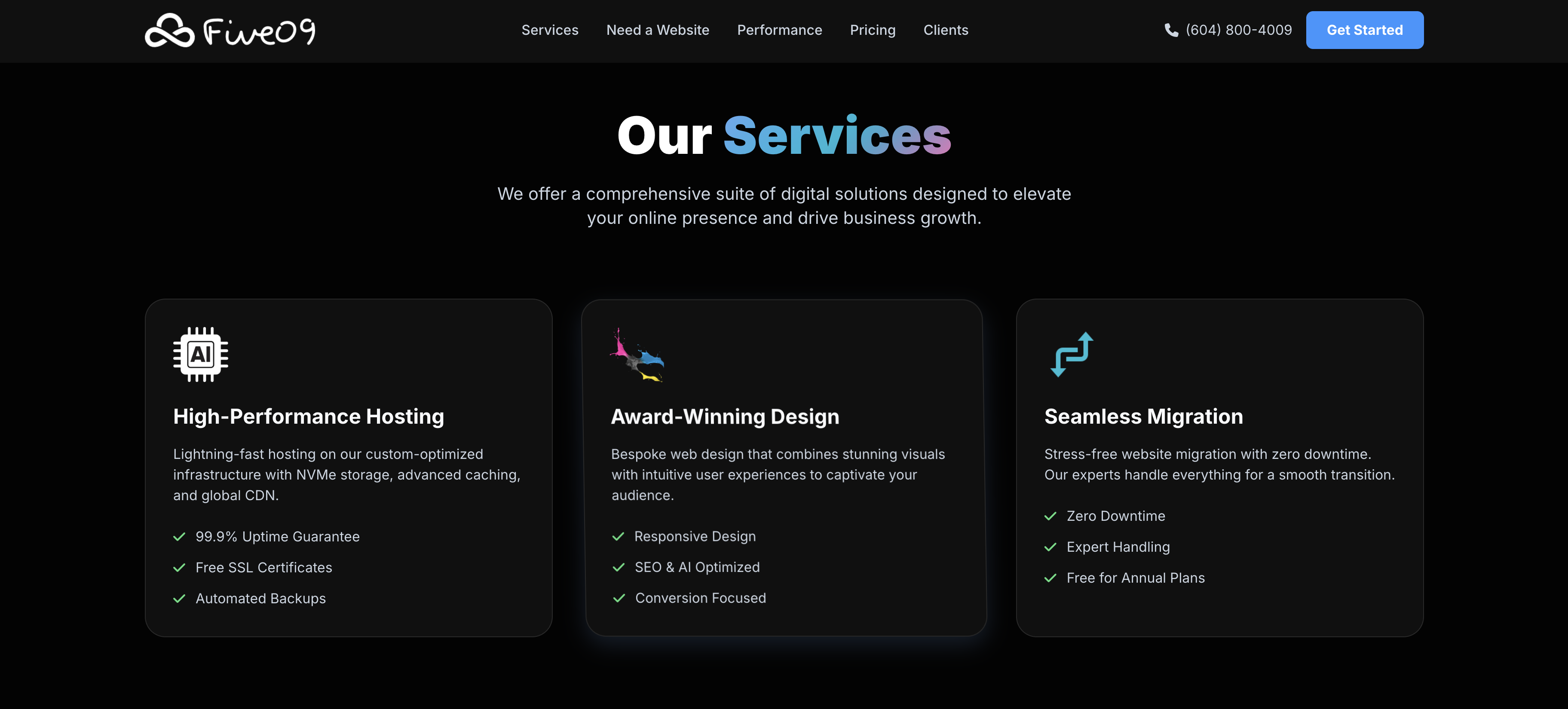 Five09.com - I offer affordable web hosting and web design services. Need eCommece, Shopping Carts, SEO, No Problem!!! Call Text or WhatsApp: (604) 449-0099