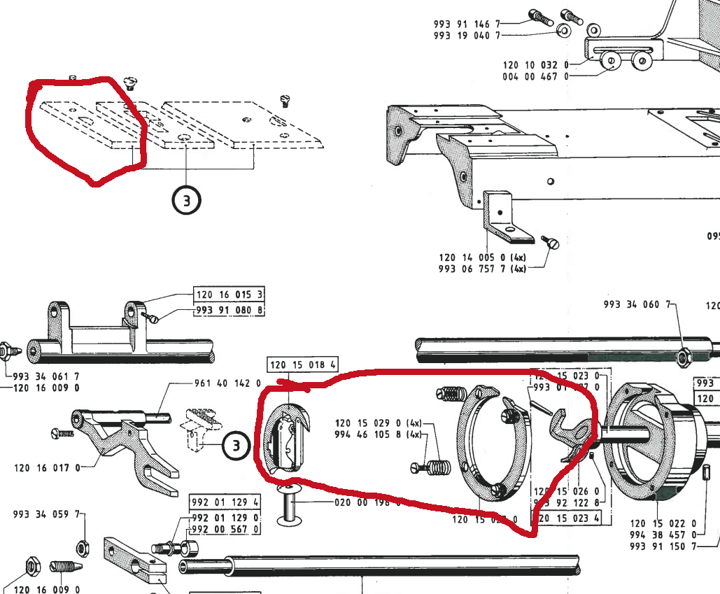 I'm restoring old Adler 20-20 machine. There is however few critical parts missing from it. I know it would be very difficult to source these missing parts for such old machine, all leads would be appreciated. I have not found any parts diagrams for this exact model, so I don't even know what I'm missing exactly. I know that I'm missing presser foot, leftmost slide plate and needle clamp. I do have original bobbins, but I'm missing shuttle hook and holding parts for that. Based on dimensions of my original bobbins (43.9x32.4mm), I have figured out that hook that I can find with part number #58669 could work, apparently it's used on Singer 7 series along with some other models. If that hook fits, I still need parts that keep it in place. Can anyone confirm what I'm actually missing? Is it just one part with fours screws keeping hook in place, like in Adler 120 (diagram here), or more similar with Adler 20-2 where there is two parts and spring (Singer 15K style)? Based on four threaded holes I have there, I'm guessing first mentioned Adler 120 style part is probably what I'm looking for this machine. Other than that, my machine looks very complete, however before diving more into this project I need to find these parts first. Can anyone confirm anything from my thoughts here? Could that (#58669) hook work in this machine? I have not found dimensions for that part, or photos of original hook for this machine. Is it possible that adler 120 part for holding it in place is identical? Any other machines that could share parts with this, or have parts that are more easily available and adaptable for this after some modifications? In best scenario someone here has obsolete old stock spare parts available for this, or has similar behemoth in his garage as a doorstop and wants to sell me some parts from it. Or at least someone here has this same machine and is willing to take some pictures and possibly measures.