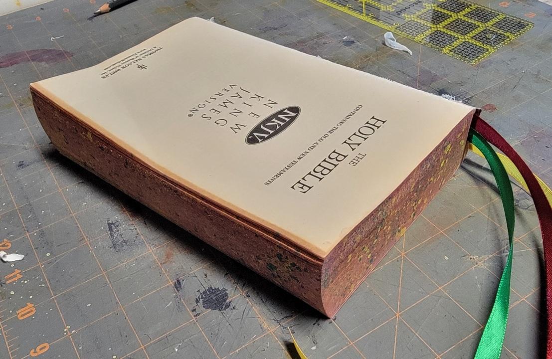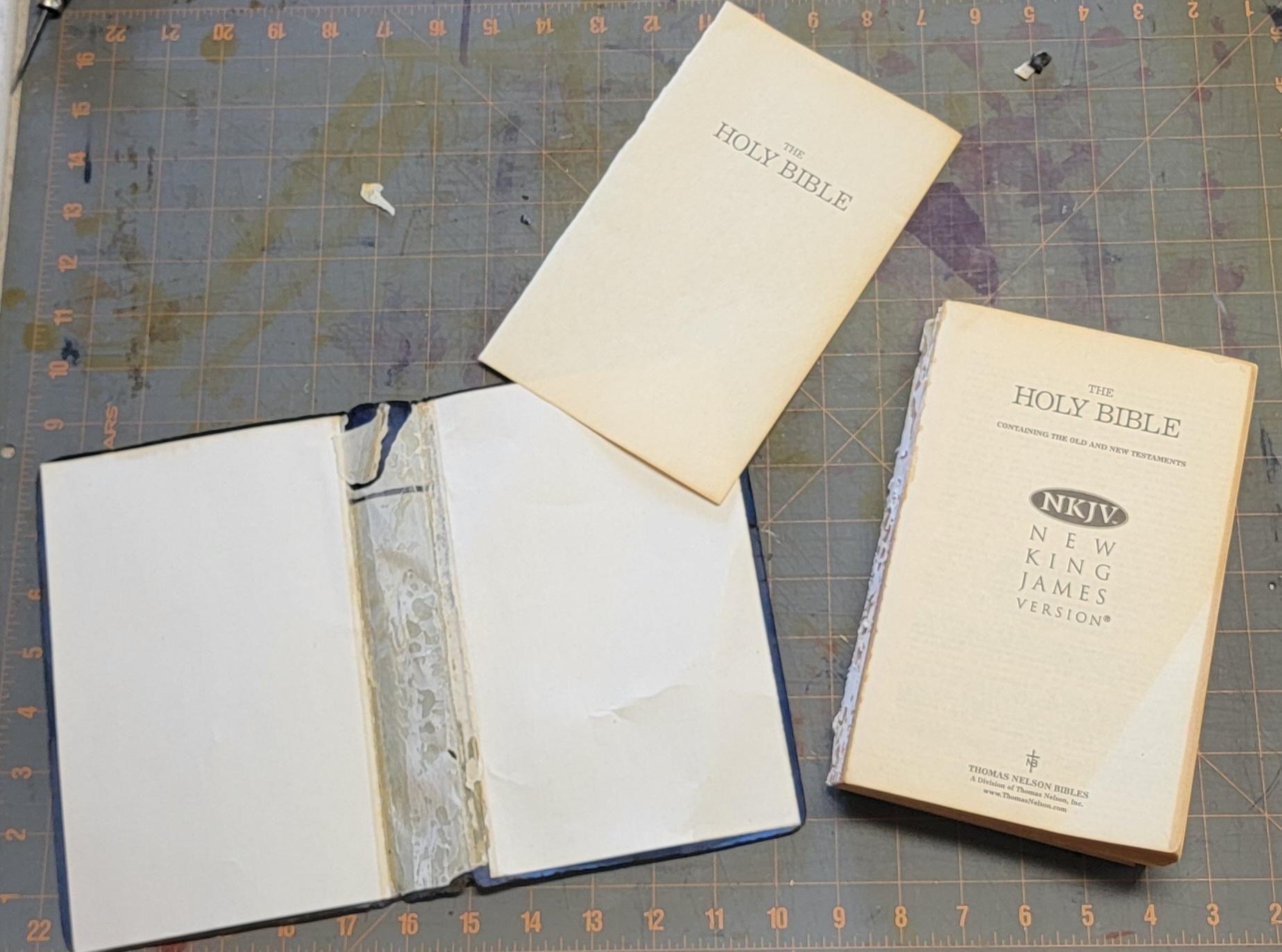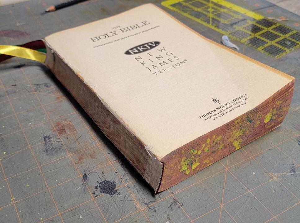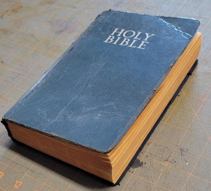 One of the first ones I did was an old Bible. I used 5/6 oz. leather for it. I did some tooling on it as well. It is somewhere between a soft and hard cover.