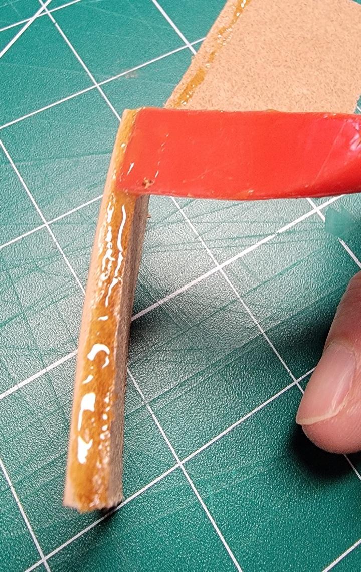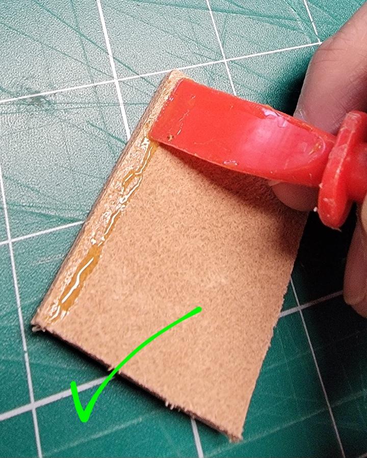 Just to add to Dwight's excellent advice: I use Weldwood "Red Can" Original contact cement because it's widely available at nearly every BIG BOX store, hardware or paint supply in my neck-of-the-woods. It's been my go-to adhesive for cabinetry, countertops, etc for 30yrs now...and following the directions on the can (purt'near identical to what Dwight described above), you will get excellent results. Just get it where you want it the FIRST TIME...because there is very limited adjustment once those two surfaces are joined together. That's really what contact cement is for: bonding things you want JOINED...as in, "let no man tear asunder," if correct procedure is followed. I use the very same metal handle "acid" brushes from Harbor Freight...with a 36pk only costing $3, I just use 'em & toss 'em...trying to clean cement outta one usually isn't worth the trouble. The bristles are stiff enough to allow control over where the cement is placed on your leather pieces. Chip brushes are also an option for larger areas that need gluing...HF's in my area also has those in bulk 36pack. Don Gonzales even did a video on the stuff a few weeks back, comparing it with other options...he uses GALLONS of it every year in his TX saddlery shop. Good luck...and I even like burnt bacon!