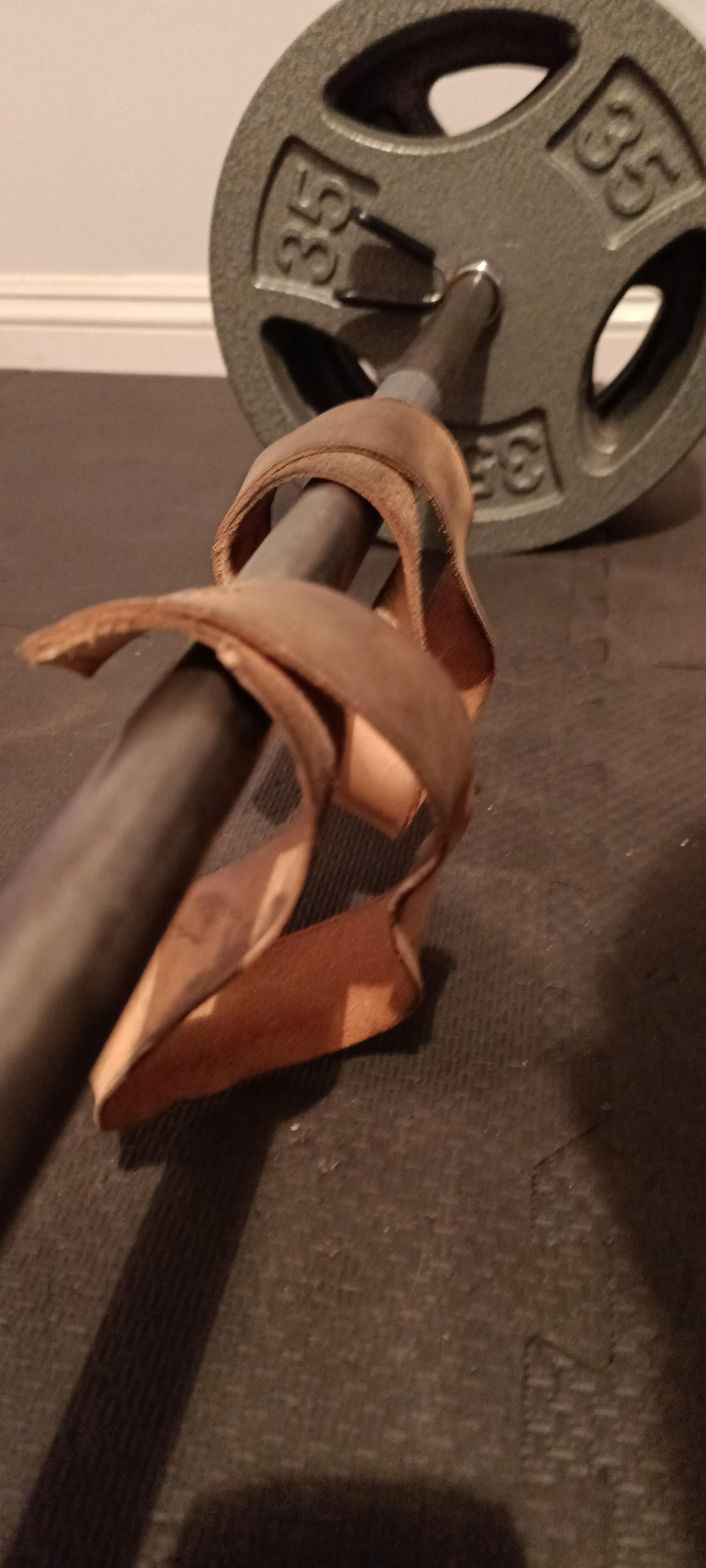 I have a home gym, and sometimes lift beyond my grip strength. These lifting straps are one way to progress beyond that grip strength limit. There are a few ways to create them, and none look nice, at a glance. Mine least of all. Question is, have any of you made such? Even better, did you find something that doesn't look like steamed manure after a bit of use? These are admittedly minimal effort, but if there is a way to make them better, I would probably try. Stretching, iron filings and caustic persperation are all challenges this will face... forgot to follow...
