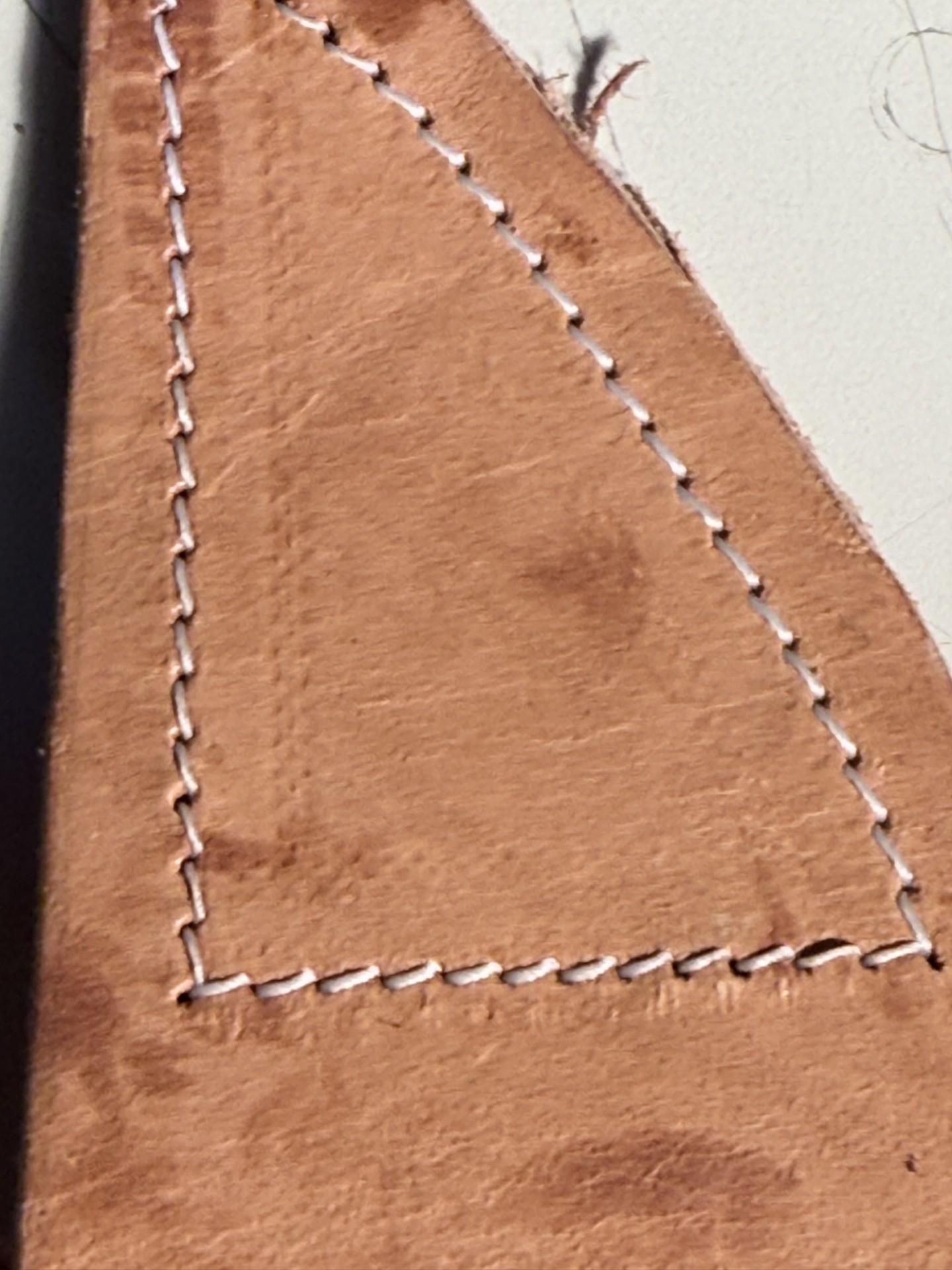 How do you do precision embroidery? Leather is not like woven textile where embroidery thread goes through the natural spaces between weft and warp. With leather you actually pierce and weaken the material with each hole you make, so if you make your embrodery stitches too close together you're essentially making perforation lines where the leather can rip apart. - Today