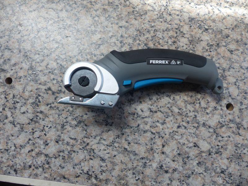I saw this little thingy at Aldi and for $15 just had to buy one. Rechargeable rotary cutter, says it can cut up to 1/4". I tried it on a piece of old saddle skirt, 1/4" thick and quite hard, and it cut it nicely. The blade is interesting as rather than being round it is octagonal so has sharpened "points". Could be useful for softer leathers.