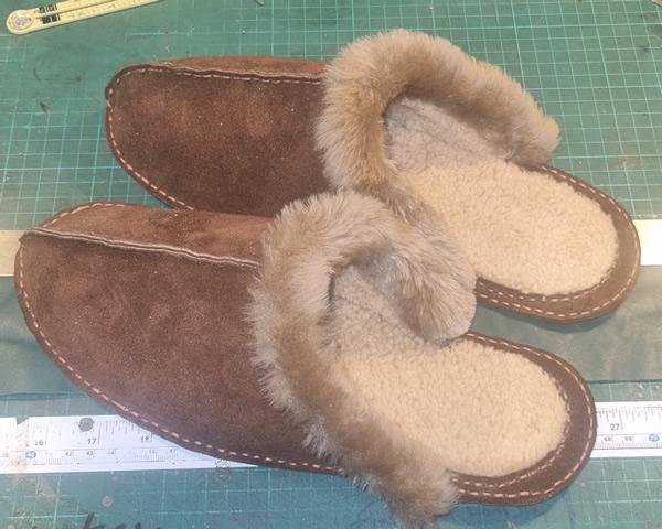 Good job Chuck, I did much the same thing. Got half way through and got fed up trying to work things out so bought a pattern. Easy enough to do and I had a piece of sheepskin. I ran out of sheepskin so used a bit if something else. I have lots of real fur that's just sitting there cos many over here are squeamish about real fur. Turns out I don't like the open back so will prolly put a back on. I'm not keen on the boot type but they look good. I do like the blue ones for something you can go out in in fact, when I bought the slipper pattern I bought this one also which is closer to what I was trying to do in the first place.