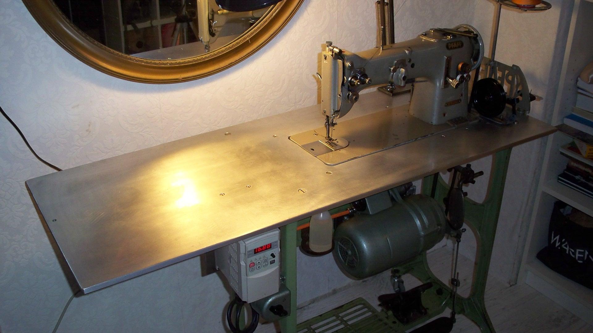 Hi, Being a metal worker by trade, I made my table top from a sheet of 12mm (about 1/2 inch ) aluminum plate for my Pfaff 138 For my Singer 29-33 (now replaced by an Adler 30-7 cause it handles bigger bobbins) I made the whole table from angle iron - bolted together to show other people that it can be done without any welding skills - even though I´ve been TIG welding for nigh on 40 years. Greetings Hans