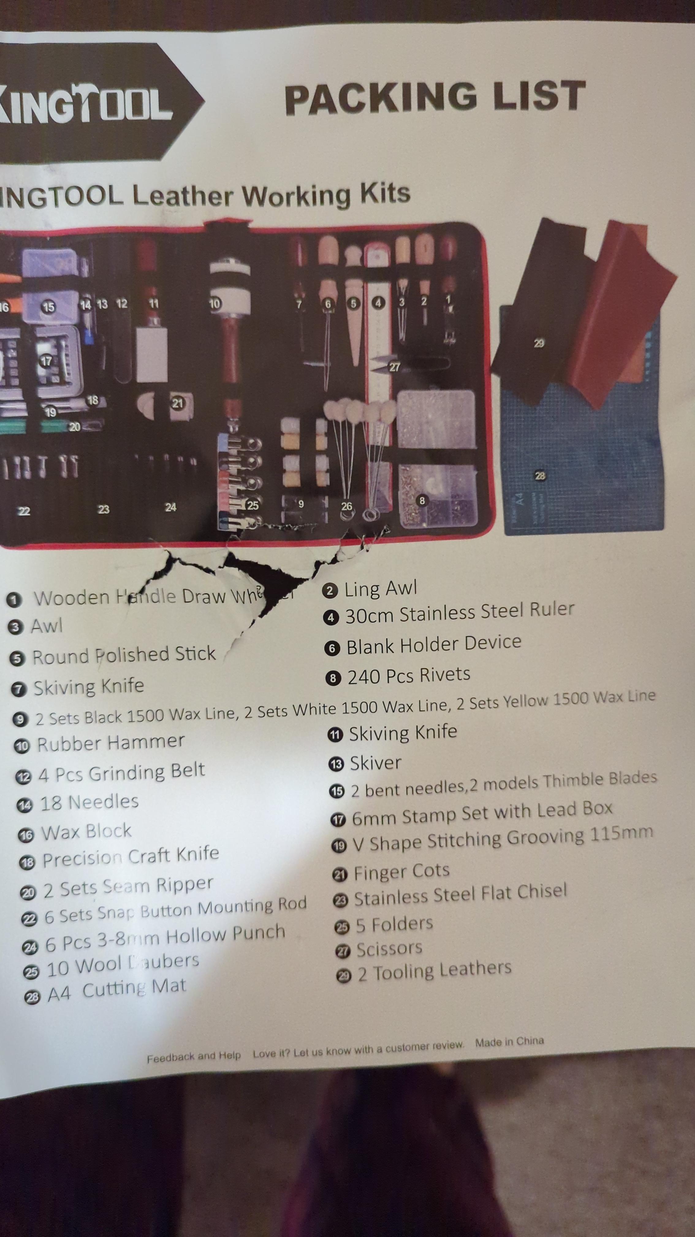 Thanks I just got this kit on Amazon... Now I need to get some leather, seem to have some basic tools I guess . Now I need to get some patterns and some leather to start practicing. Saw I few things on a Renaissance fair that I would.like to some.day be able to make like a dragon mask or a dragon night night helmet. I also already promised my mom to make her a wallet once my skills are up for the challenge.