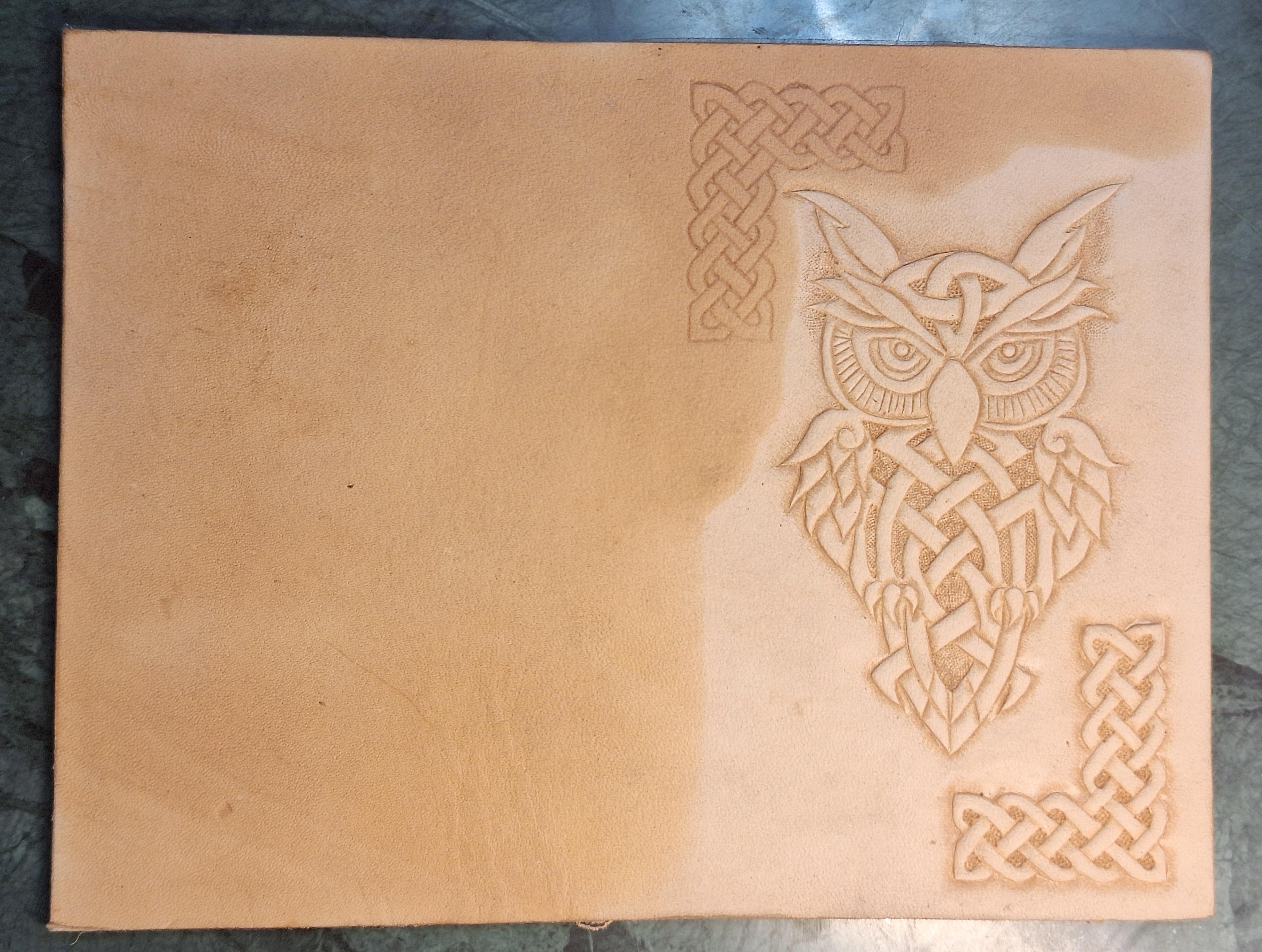 Customer wanted non Shiney. 8/9 Hermann Oak Dark and Light brown fiebings 207 bonded nylon top and bottom Cobra class 3 I finished the I side with 100 %resolene, then just wax on top. Lefty...