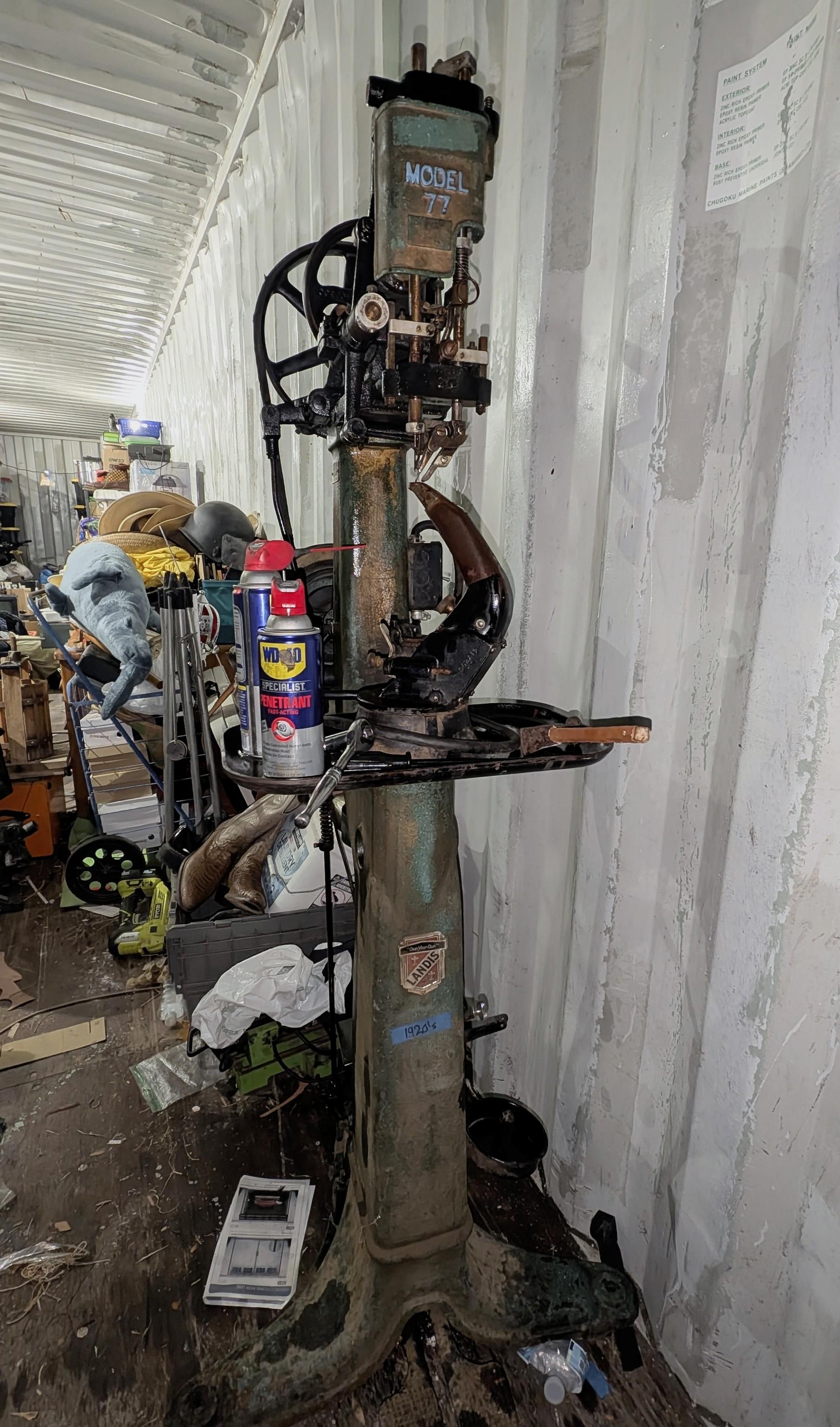 The Machine is called a Blake stitcher or McKay stitcher . It is used for sewing the soles on a shoe from the inside . In my opinion its is an inferior way of making a shoe compared to a goodyear welt . It is however quicker than goodyear because it eliminates some material and and shortens the process . The Italians love them and some of the chinese shoes are made using the process. As for other uses i cant think of any but don't let that stop you buying it . At the very least it is a cool looking machine and will clean up nice . Get them to throw in the cobblers hammer sitting on it as part of the deal . If it was in Australia i would pick it up as a repair machine and share it with 3 other cobblers i know . Between 4 of us i can't see it being used more than once a fortnight .