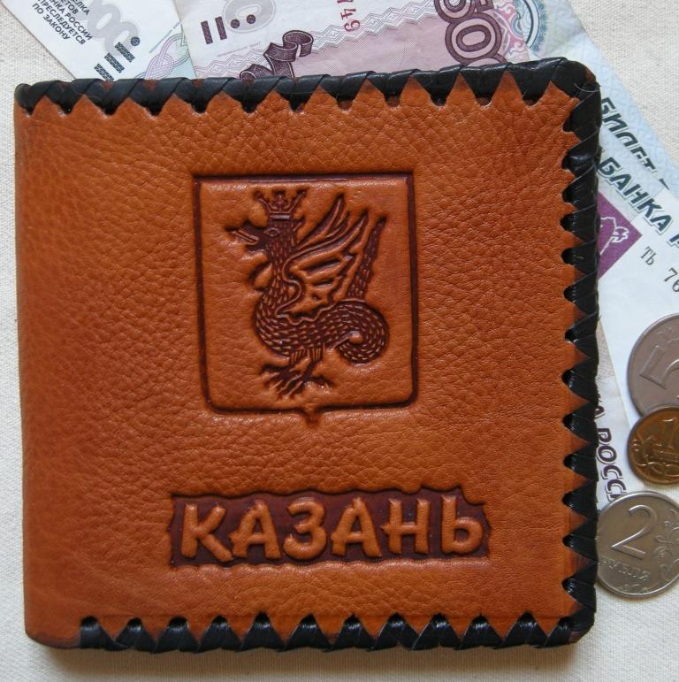 Souvenir wallet with city Kazan emblem.