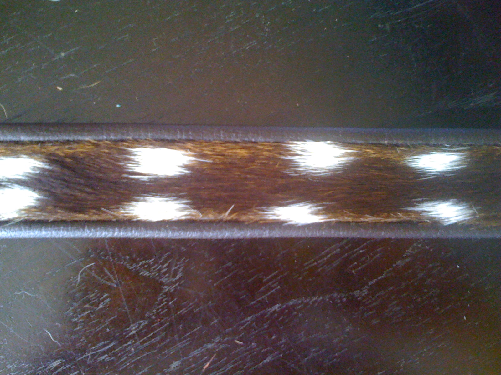 Close up of an axis deer dorsal stripe belt. When you use the dorsal stripe from the hide, you have two book matched pieces that are still useful for deerhide chaps.