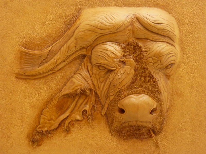 The pattern for this project came from a painting by Daniel Smith and was used with his permisson. Crystal shared a link to the picture with me and I thought the depth and textures of this animal would look great on leather. I hope I did justice to the original work of art.