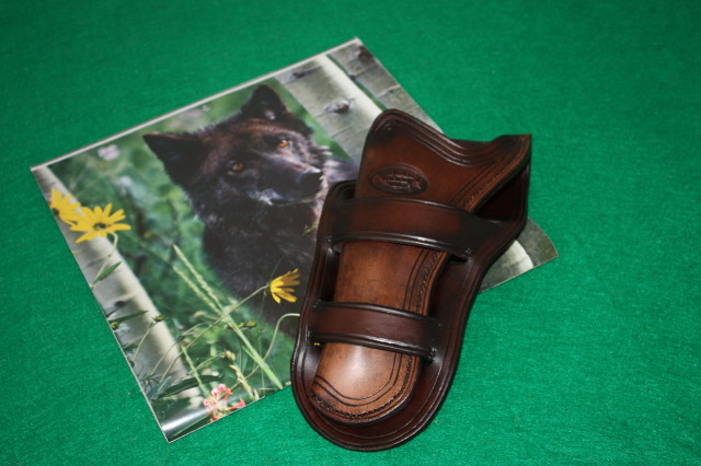 I just finished up a holster that is a pattern from my good friend , I call it you are my Angel, because I felt the presents of another with me when making this holster, like I was being guided, anyway I hope you like it, it is dyed in my natural walnut dye.