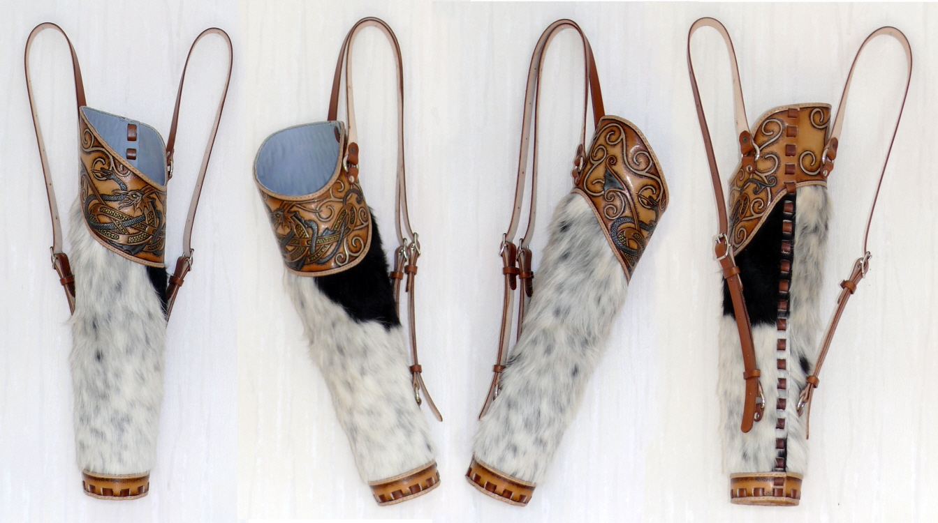 From veg. Tan leather and "Hair-on-Cow" fur.