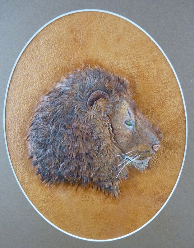 This lion will be the subject of Lesson #8 in the Sculptured Leather Art lesson series with Jan Schoonover.