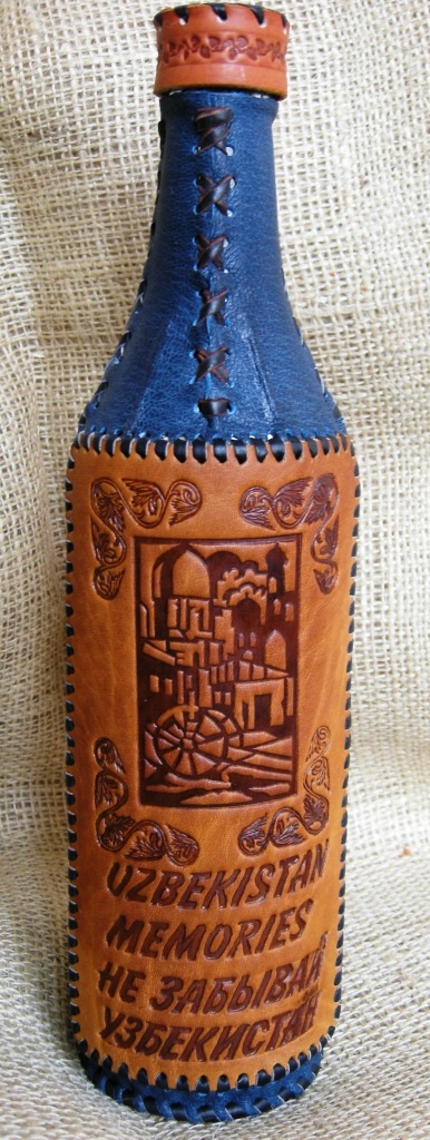 Decorative bottle in leather. Original handmade Uzbekistan souvenir.
