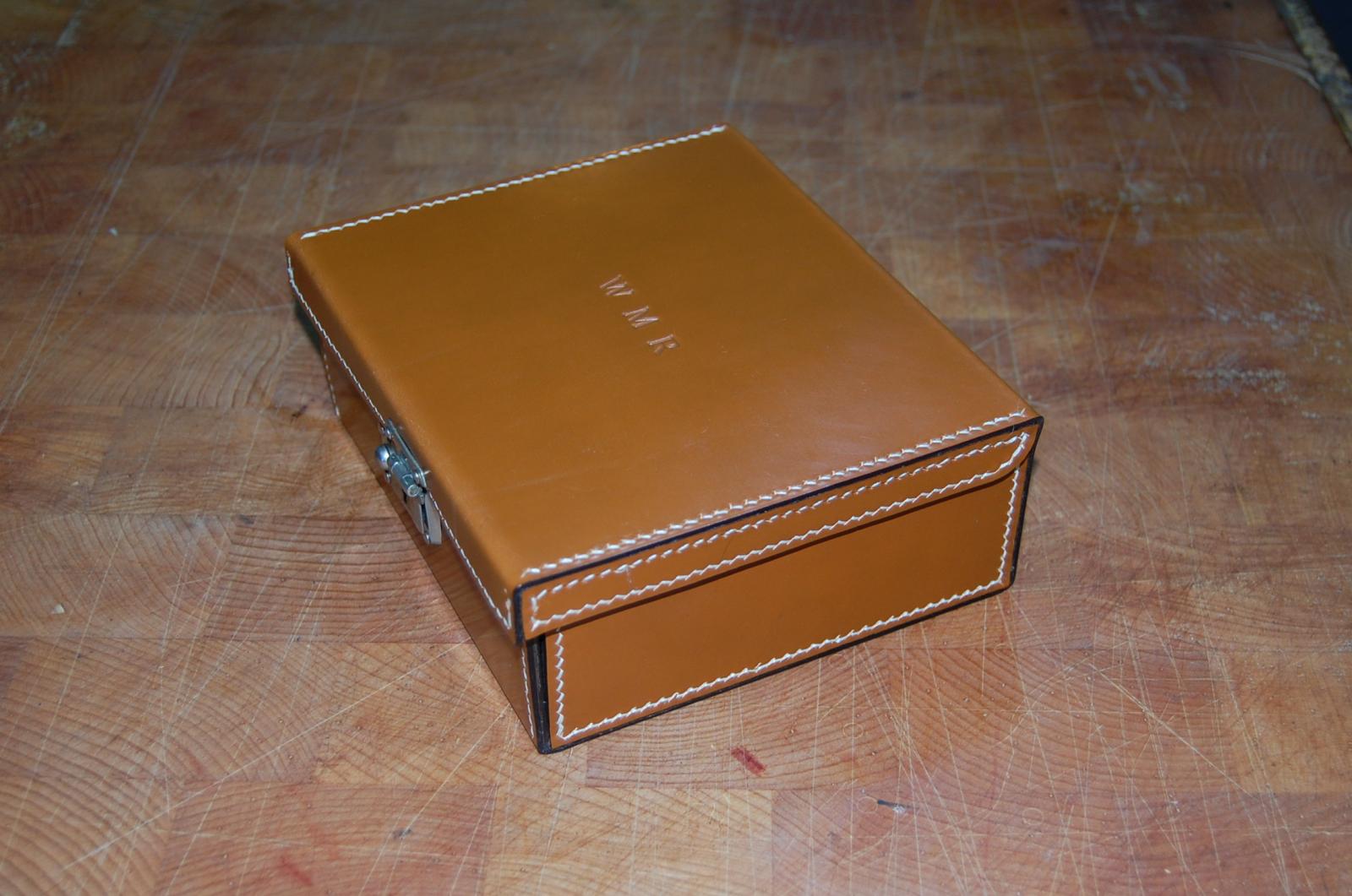 Asked to copy a 1920's? gents hair brushes case for a client, made with bridle leather 1.5mm outer, all hand-stitched, lined with pigskin lining, and embossed as original.