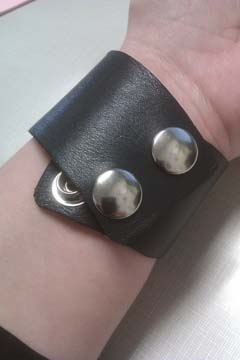 Two sets of snaps to allow him to wear them in this larger position (see other pic), and me to wear them in this tighter angled position.