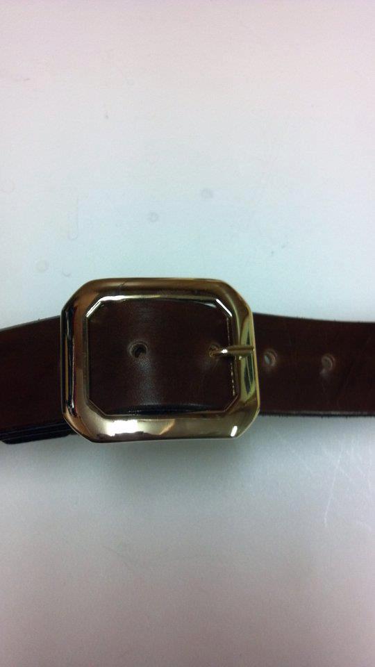 Brass Belt Buckle. 1 3/4'' wide, 10-11oz, Belly Cut Leather. Dark Brown.