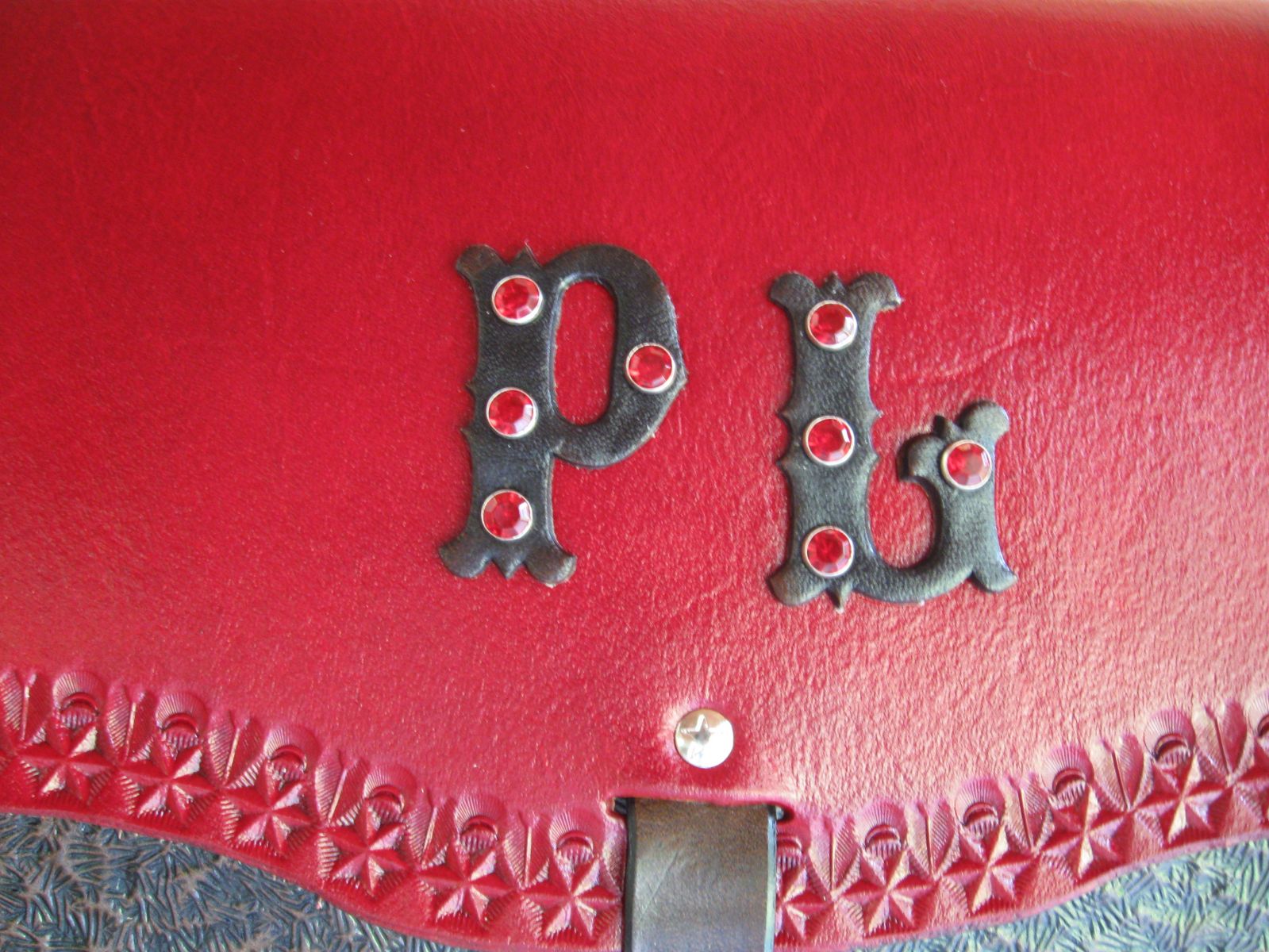 Found some old leather intials in a box...They worked very well...glued and used rhinestone rivets for a little bling.