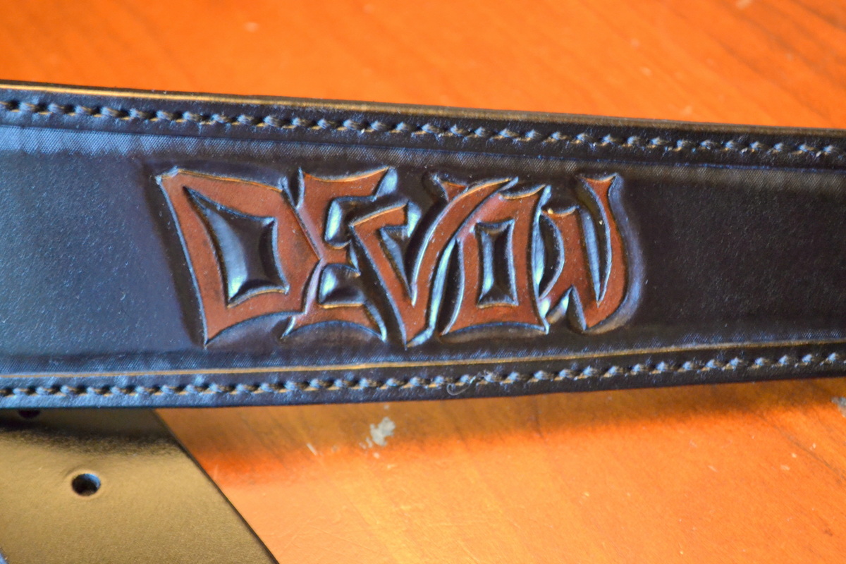 Hand-carved grafitti-style lettering. Hand saddle-stich.