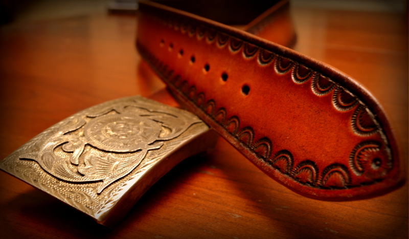 New Stamped Belt w/ Airbrushed Tri-Color Fade