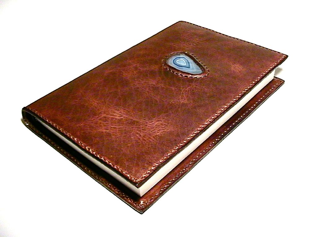Bison Leather Journal Cover With An Agate Slice Stone Inlay.