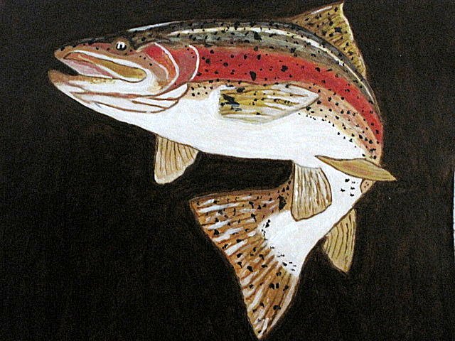 Beautiful Rainbow Trout hand-crafted on a 7 ½" x 7 ¼" Leather Canvas, actual image is 5" x 5 ½". This gives you plenty of room to cut/shape the Leather to suit your needs for a garment or to place in a picture frame. This would make a great Leather patch or however you display her, she will be an attention gatherer.