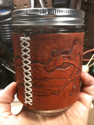 Lately I've been taking my coffees and hot chocolates on the go (traveling by bike). These ball jars have great covers except they're too hot to hold... so i made a koozie for it.