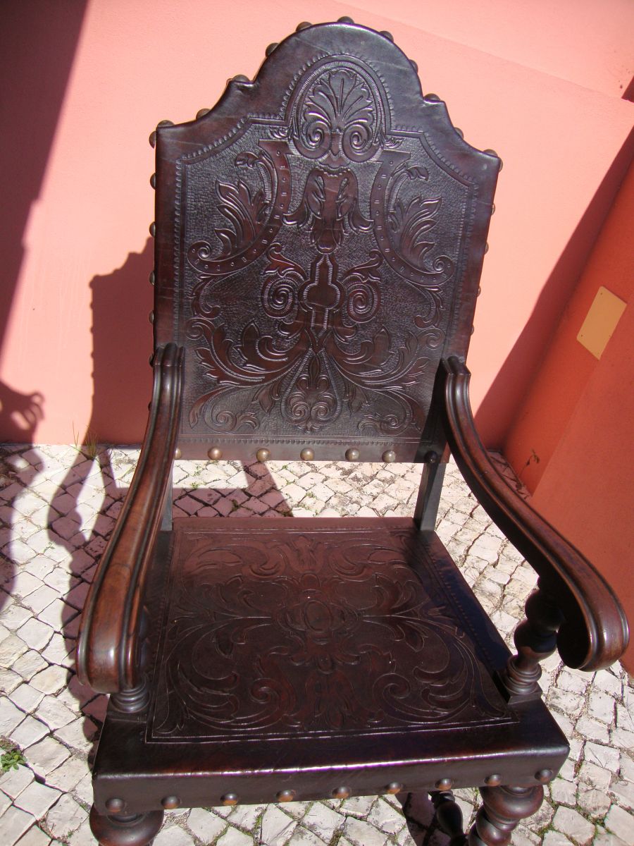 Carved leather chair