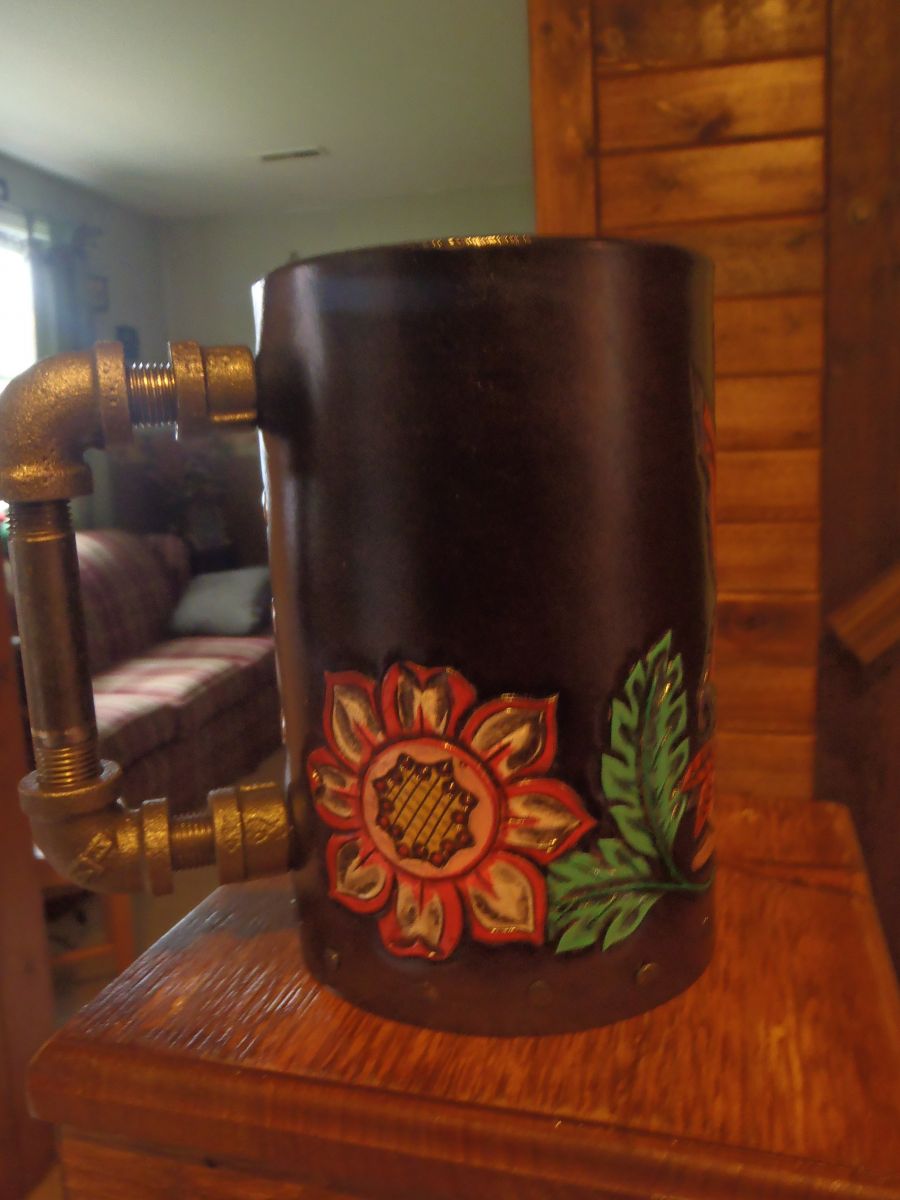 leather Mug with flowers