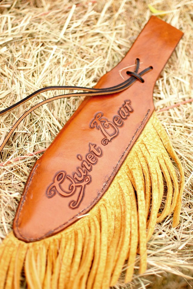 back of knife sheath. I know, I forgot to bevel/background the lower loop on the "Q" OOPs. This was my first try at using the D.o.I. Declaration of Independence) font. Again, wanting to use only "period" style, methods and materials I fashioned a locking lace closure for the belt loop on the knife sheath.