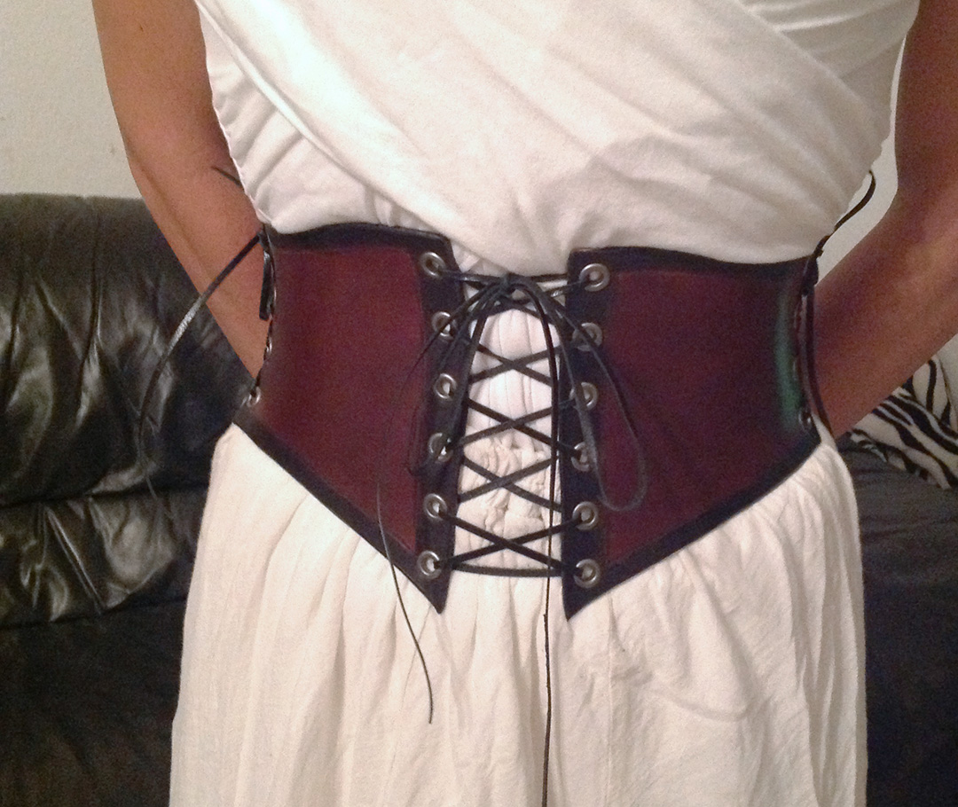 Front view of the waist cincher. Two mirrored panels with compound curves.