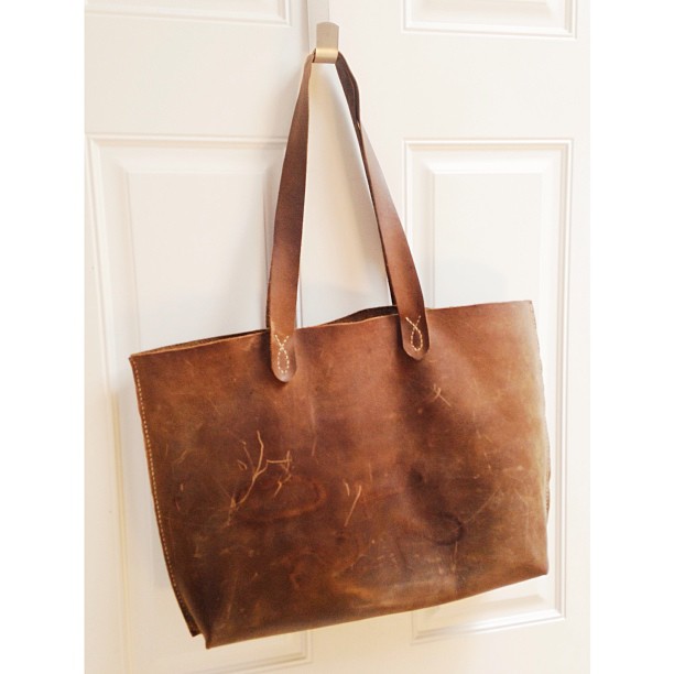 My first tote bag, 3 months worth of wear. Made from stone oiled cow.