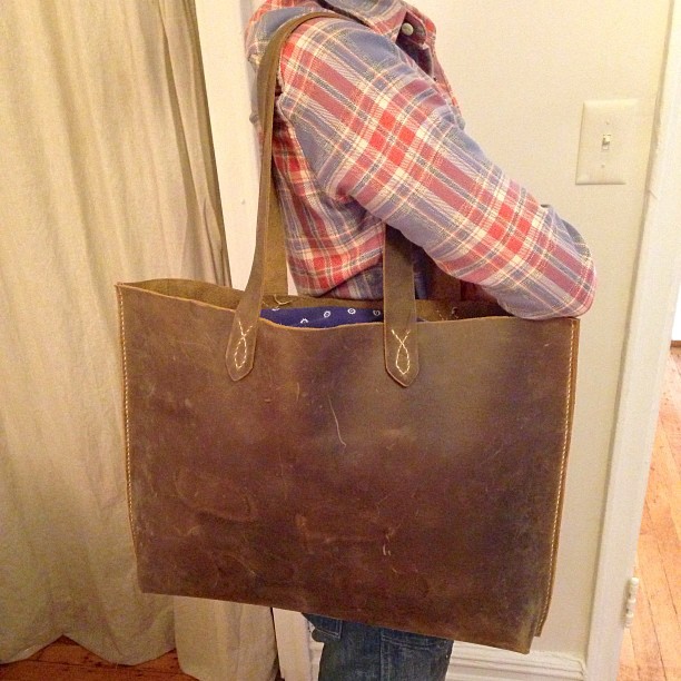 The stone oiled branded tote bag, new. Love when the leather has range marks like this!