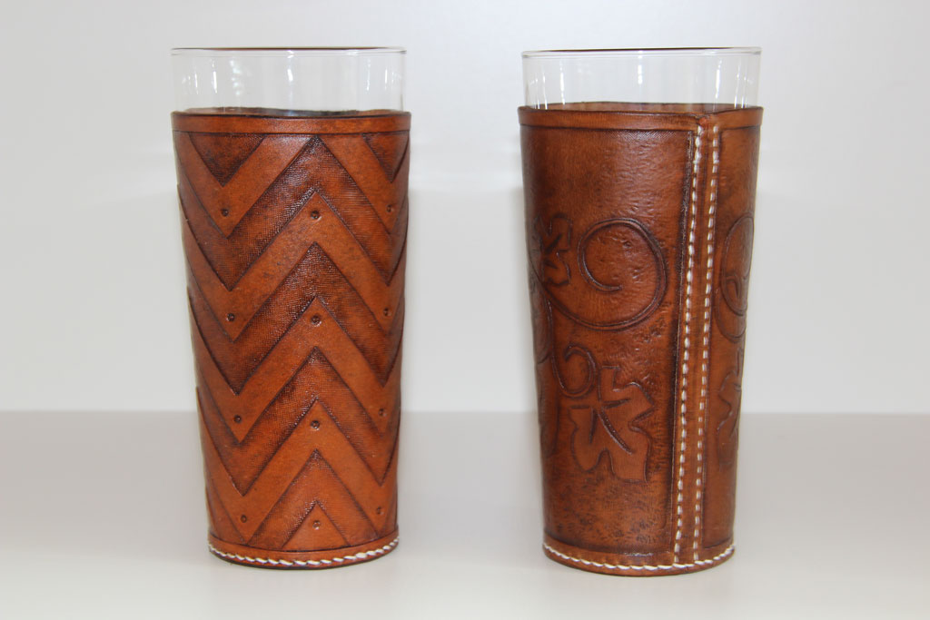 This is a birthday gift for a friend. I found some nice glasses at the flea-market and created a cover for them.