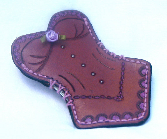 Thin ID/card wallet or holder that holds approximately 6 cards and is shaped liked a corset