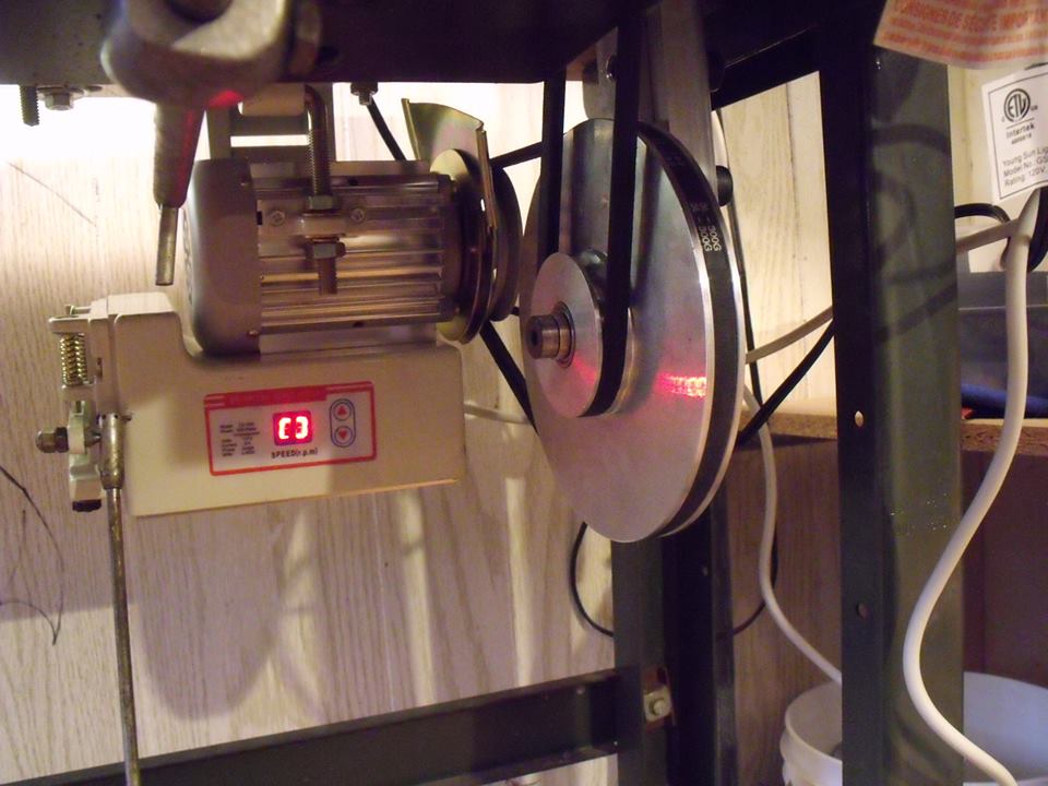 Shop made torque multiplier/speed reducer on a Chandler CU-563 (rebadged Juki?).