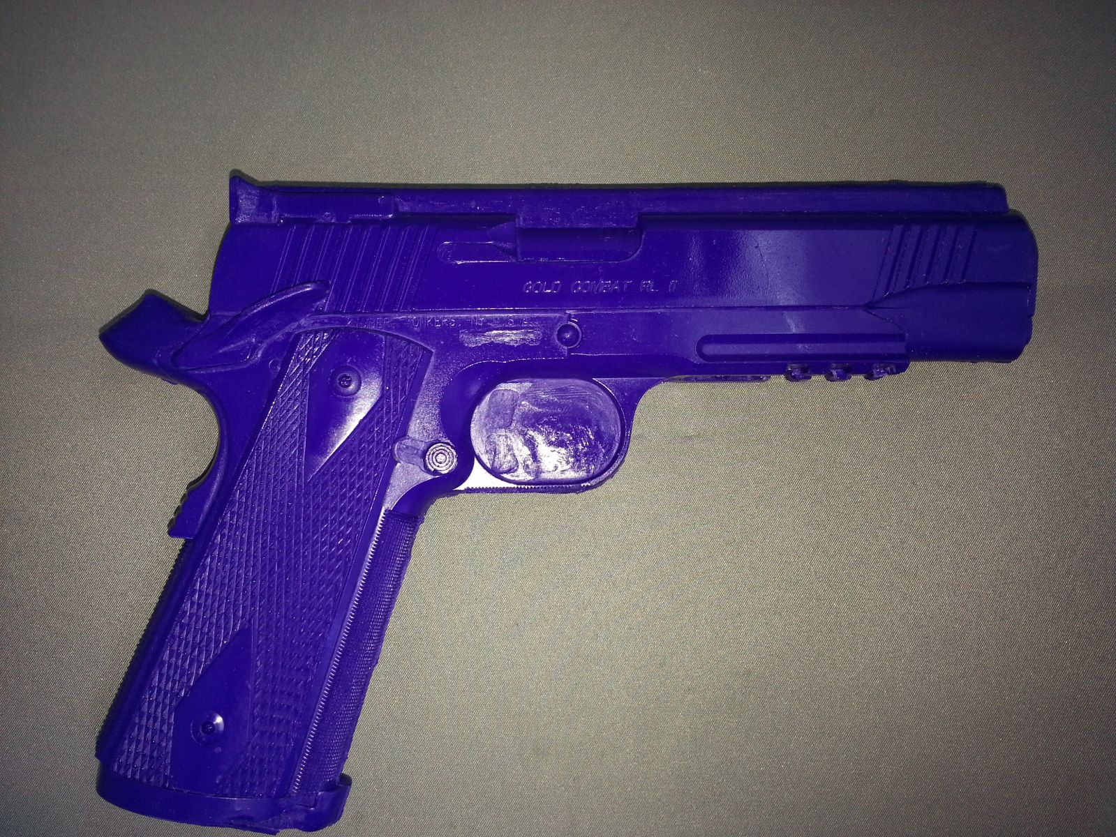 Kimber 5" with rails. Cocked and locked. Safety built up to keep from breaking. Trigger filled to accommodate the same thing. Also added a sight track for molding. The Hammer and beaver tail were also built up to keep from breaking. This mold also has ambi safety and ambi magazine release.
