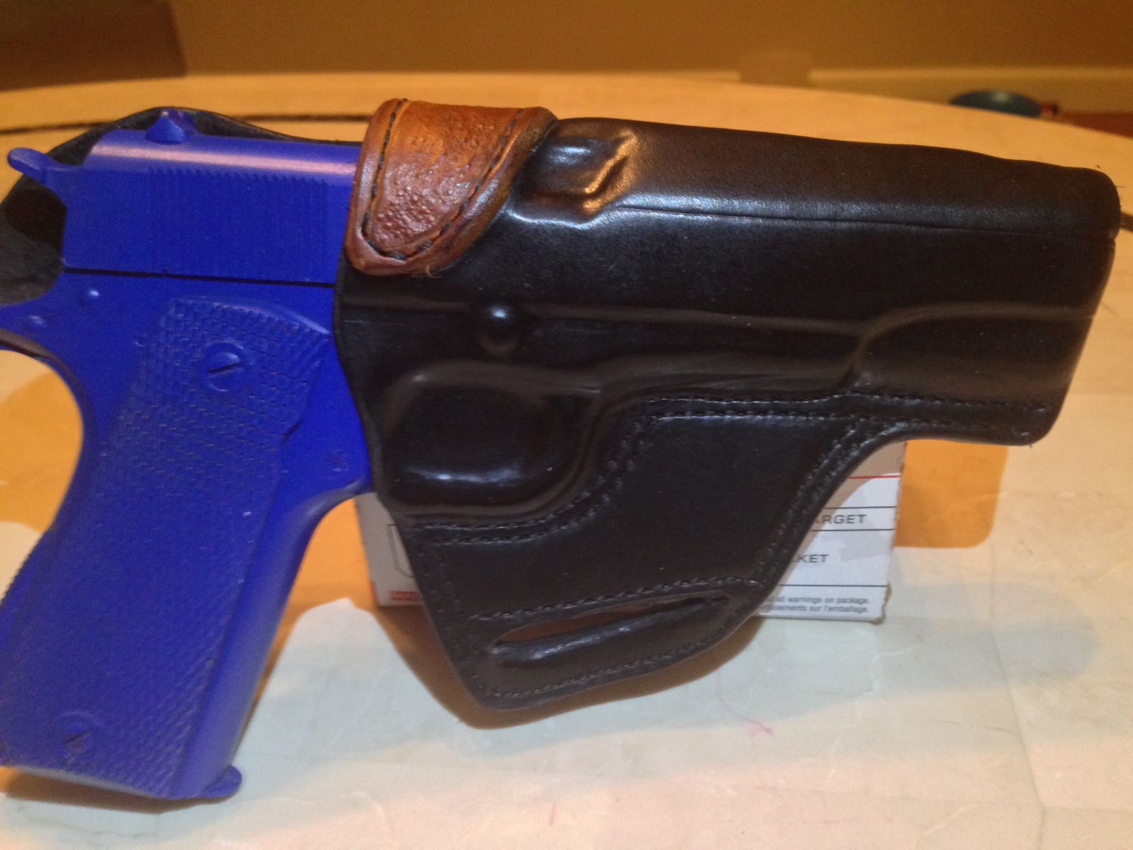 This is an avenger holster for 1911. All 8oz veg tanned. Two tone w/oil dye